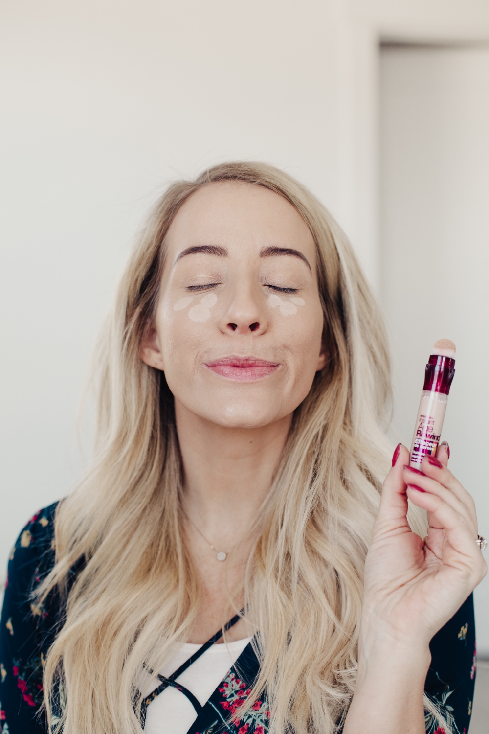 The Instant Age Rewind from Maybelline is ahh-mazing. It’s one of my absolute favorite concealers! I gently dab product under my eyes and blend it out with a small and soft fluffy brush. It’s so pigmented, really lightens the under eye and doesn’t settle in creases. It’s the best!