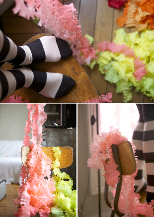 Crepe paper sheets and some scissors. Easy enough. You could buy these crepe paper sheets at Zurchers if you don’t have time to order them online. They don’t carry them at Walmart, Hobby Lobby or Ben Franklins. Ha, I checked!