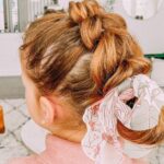 I’m so excited to show this super fun and simple pull-through pony tail with Demi! To get started I grabbed 6 – 10 clear elastics, a rat tail comb, a spray bottle and a little hairspray, as well as my favorite Twist Me Pretty hair scarf for a gorgeous finishing touch!