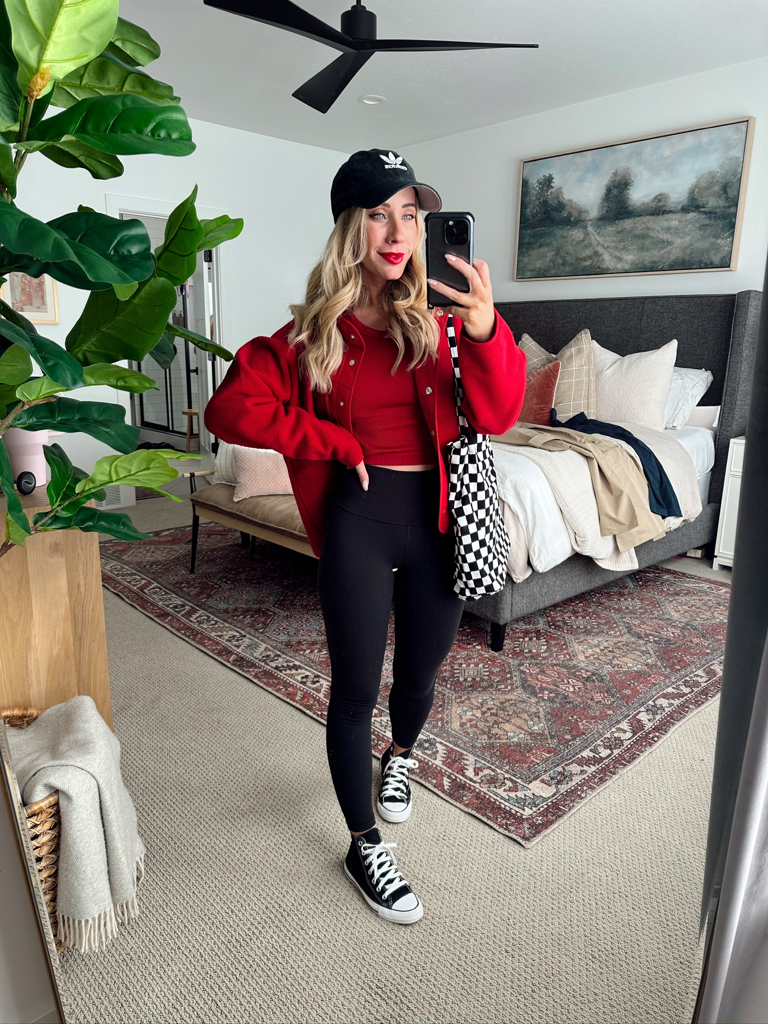 FLEECE / TANK / LEGGINGS / CONVERSE / HAT / CHECKERED BAG