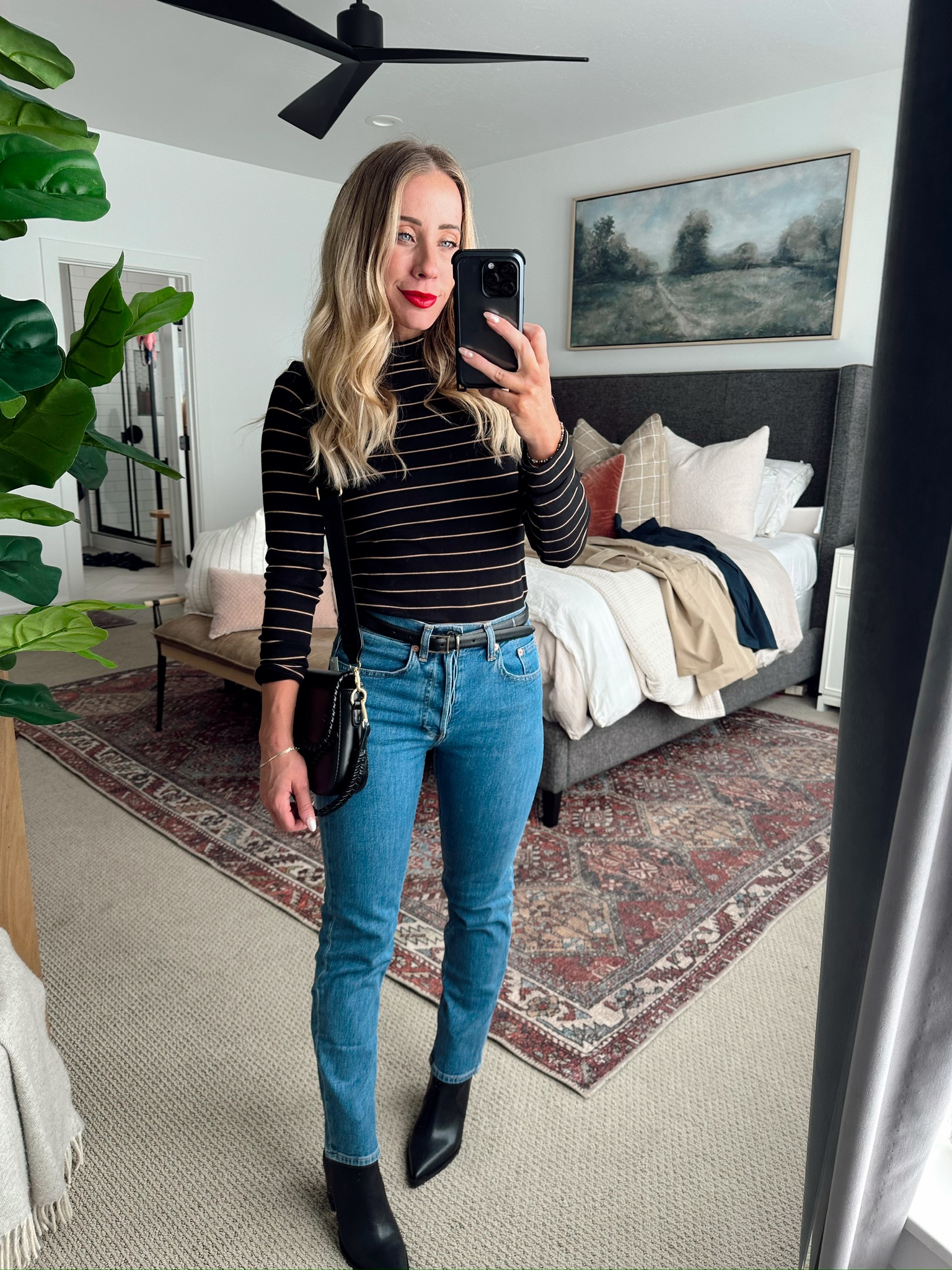 MOCKNECK / JEANS / BOOTS / PURSE