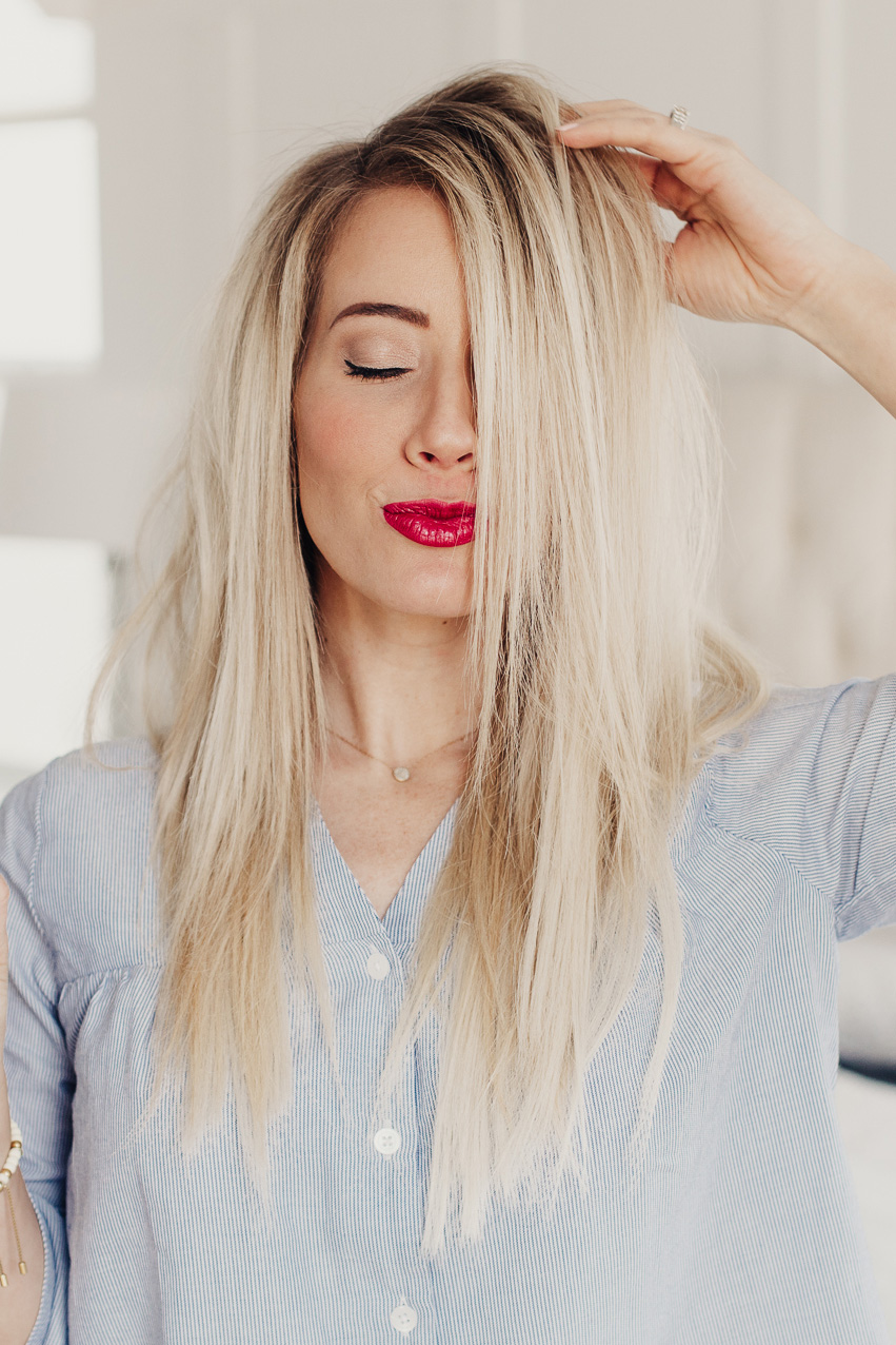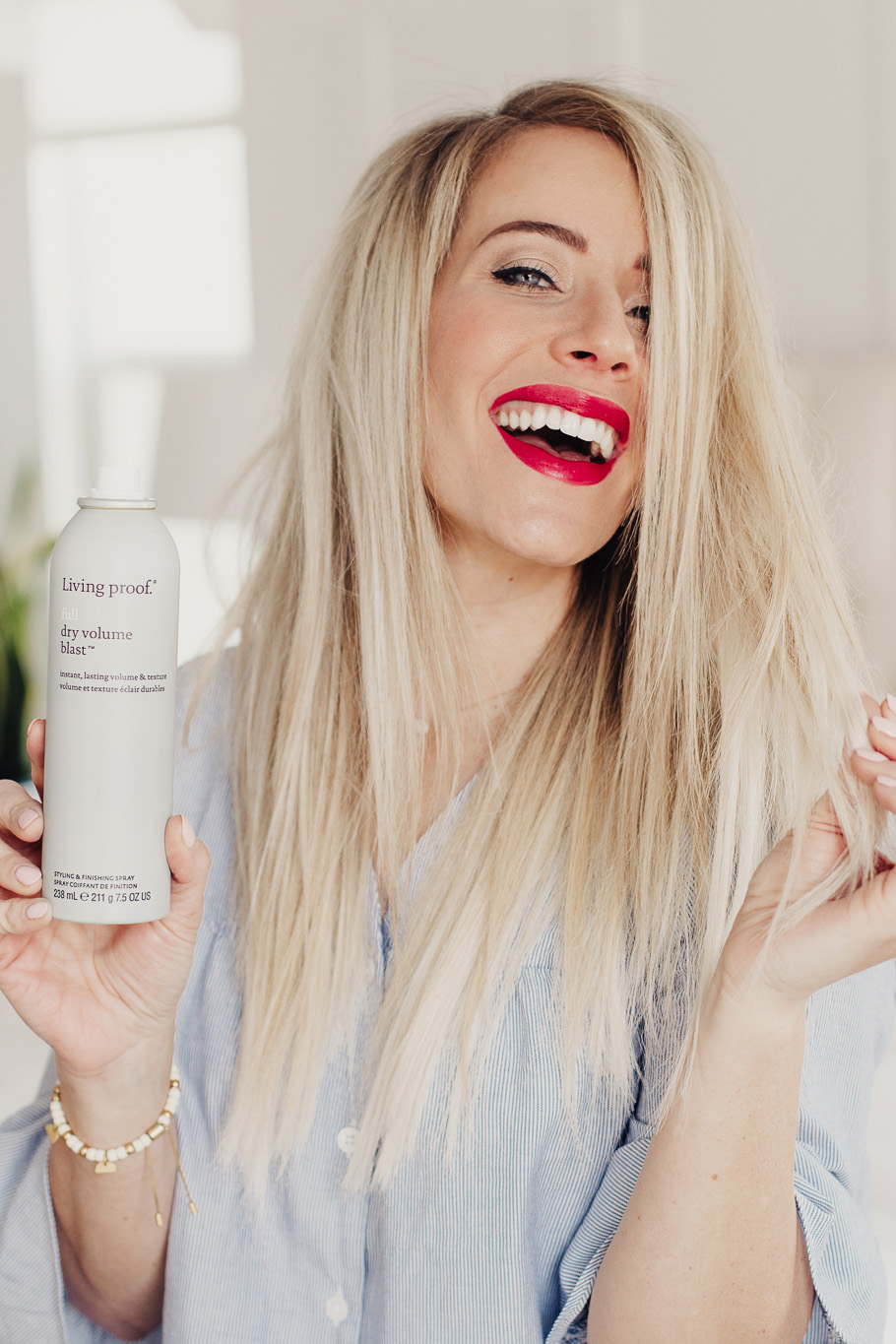Hiya everybody!!! Today I’ve got THE EASIEST trick to get volume with straight hair! I don’t know if you’ve noticed but I’ve been wearing my hair quite a bit lately. I typically shy away from straight styles because I can never keep volume or texture in the hair and it just always falls flat! Living Proof sent me their new Dry Volume Burst and it’s ?? literally giving me life!