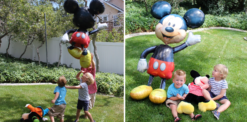 Party City sent me the 52″ gliding balloon that you can find here and want to offer a $50 giftcard to their store to one of my lucky readers! These balloons are seriously awesome. You can get a buzz lightyear, an elmo, dora, winnie the pooh- you name it. The kids had so much fun playing with it. It was pretty much adorable when Boston first saw him. And honestly- I can’t believe he lasted as long as he did. Boys. Need I say more?!