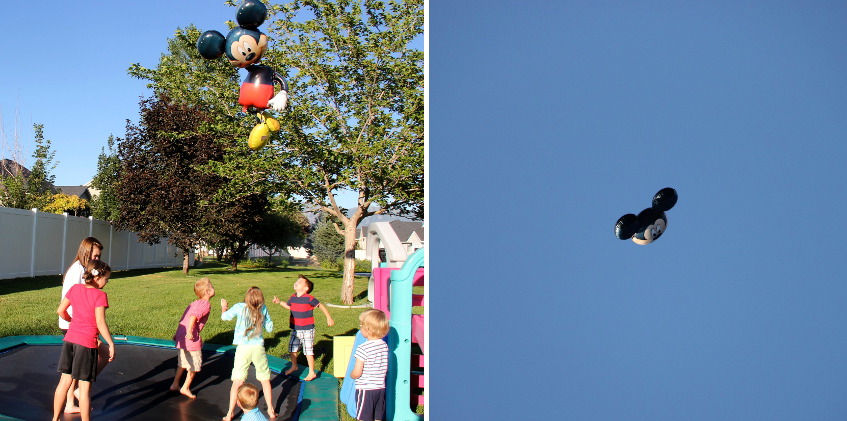 Boston was super sad at first, but then the kids had fun watching him float into the sky.