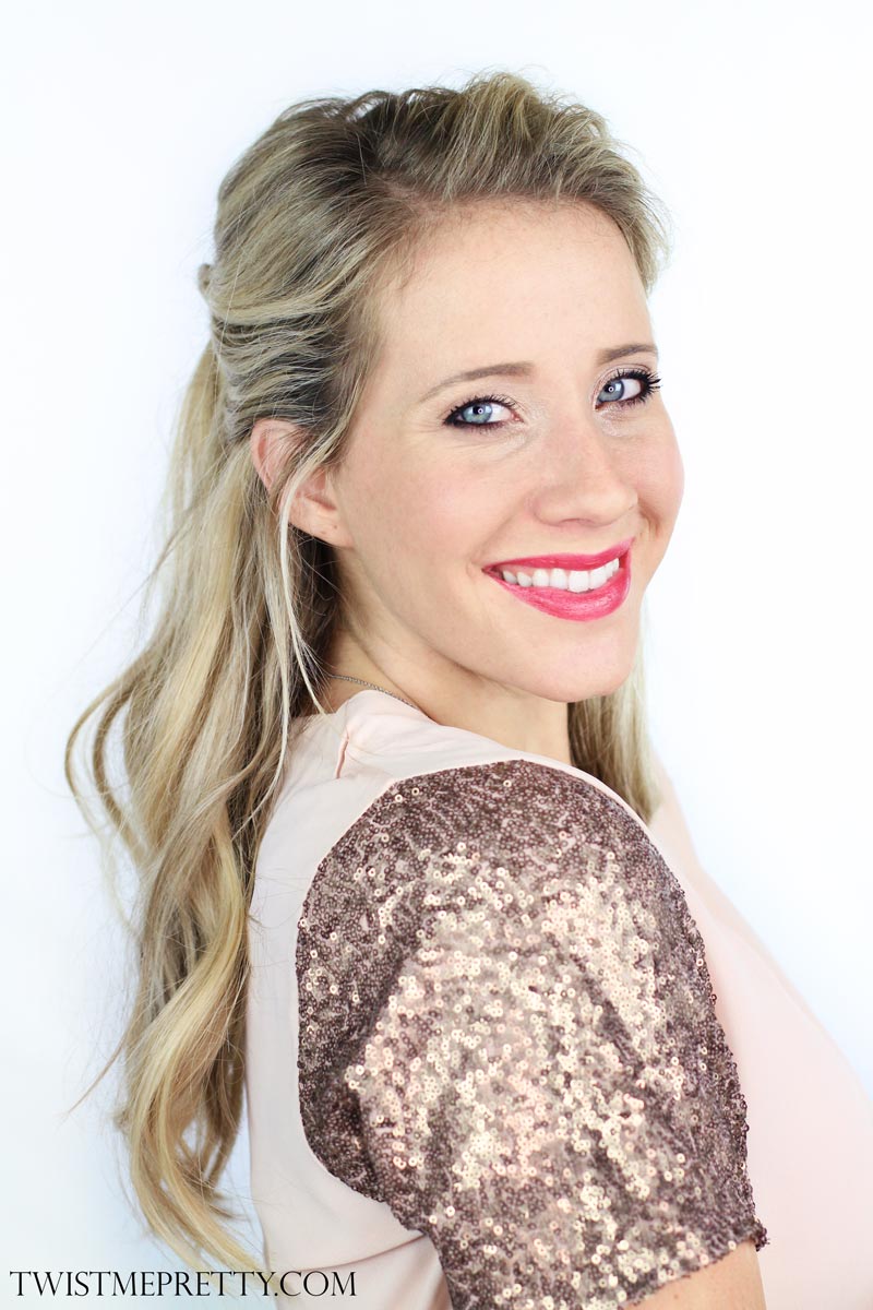 I definitely had Valentines Day in mind when coming up with this hairstyle. I wanted something soft and romantic, something that was very touchable and easy to do. Inspired by… well… roses haha I came up with this little number. If you’d like to see the full tutorial, click through!