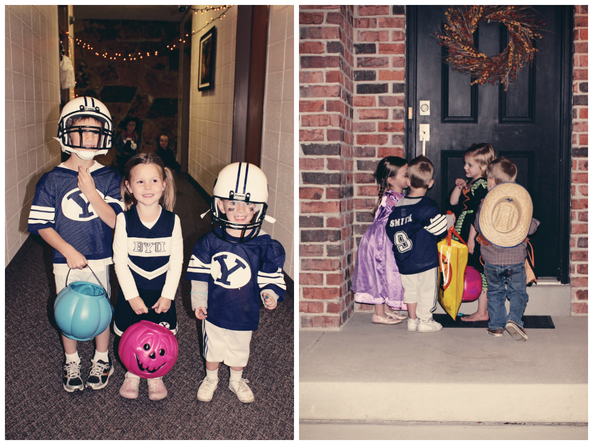 The month of October has been everything but normal. We bought pumpkins and never found time to carve them. We had all the ingredients to make Halloween treats and never got around to actually baking anything. This month has just been one thing after another. At times trying to live up to the expectations of Halloween can be a little bit discouraging. And then all that discouragement just dissipates as you watch how happy your children are as they run from door to door with a bag of candy. The smile on Boston’s face just melted my entire world. He and his friends laughing at the door step waiting for their candy… I’m gonna say it… it was priceless. And then there’s our little cougar. Ew I just want to squish her and kiss her all over. In the end all those unfinished Halloween projects don’t matter. The messy house covered in toys and and art projects paint the picture of a happy home and happy children. And really that’s all you can ask for.