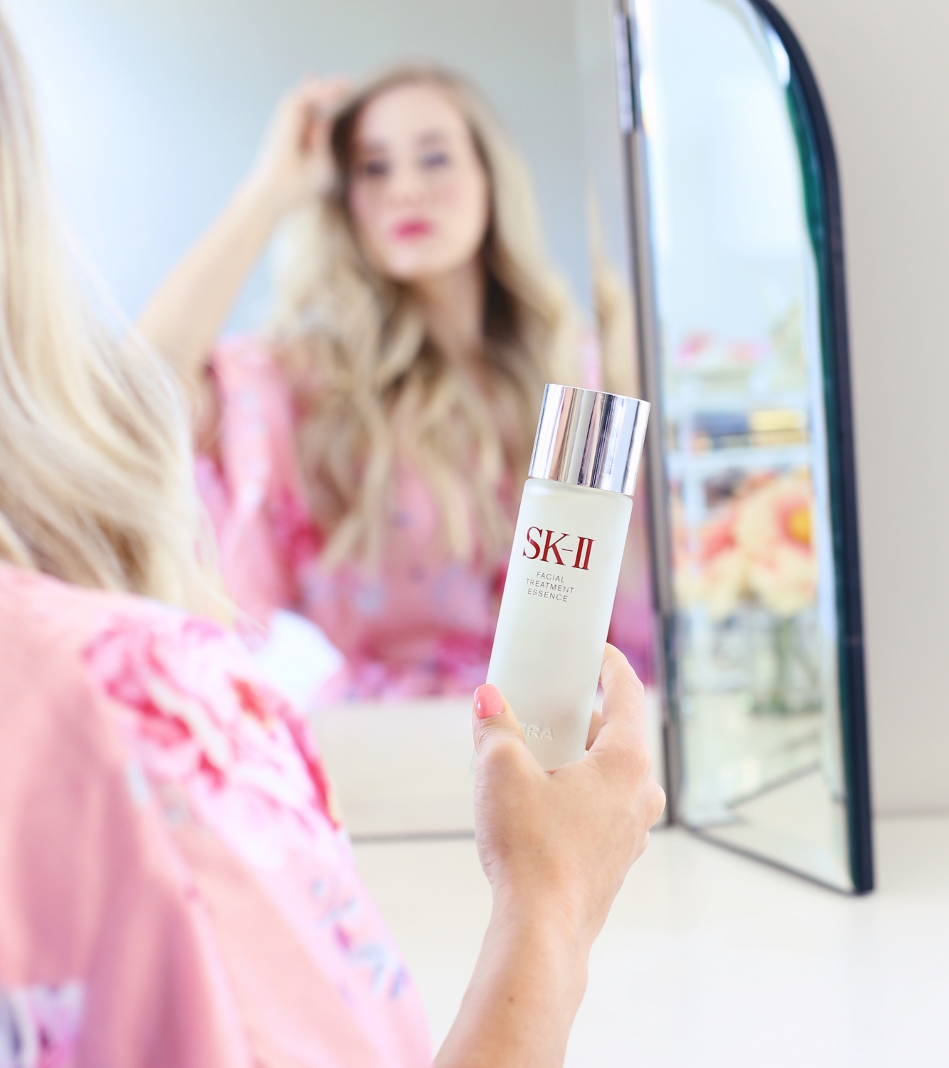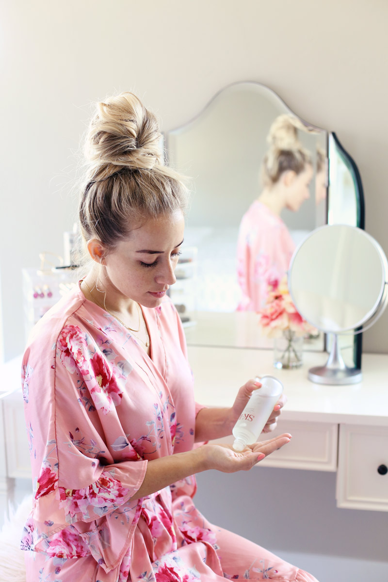 I am so excited to share a new beauty product with you guys today!! It’s honestly become my most favorite and treasured product in my skincare arsenal, which is a big deal because over the past few years I’ve tried so many in an attempt to improve my aging skin. It’s called SK-II Facial Treatment Essence, have you heard of it? A lot of people refer to it as miracle water, it’s made up of 90% Pitera™ which is a clear liquid rich in vitamins, amino/organic acids, and minerals.