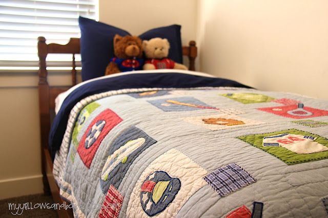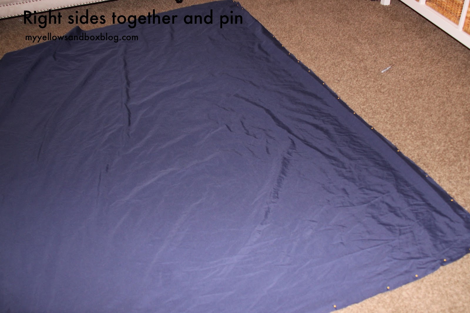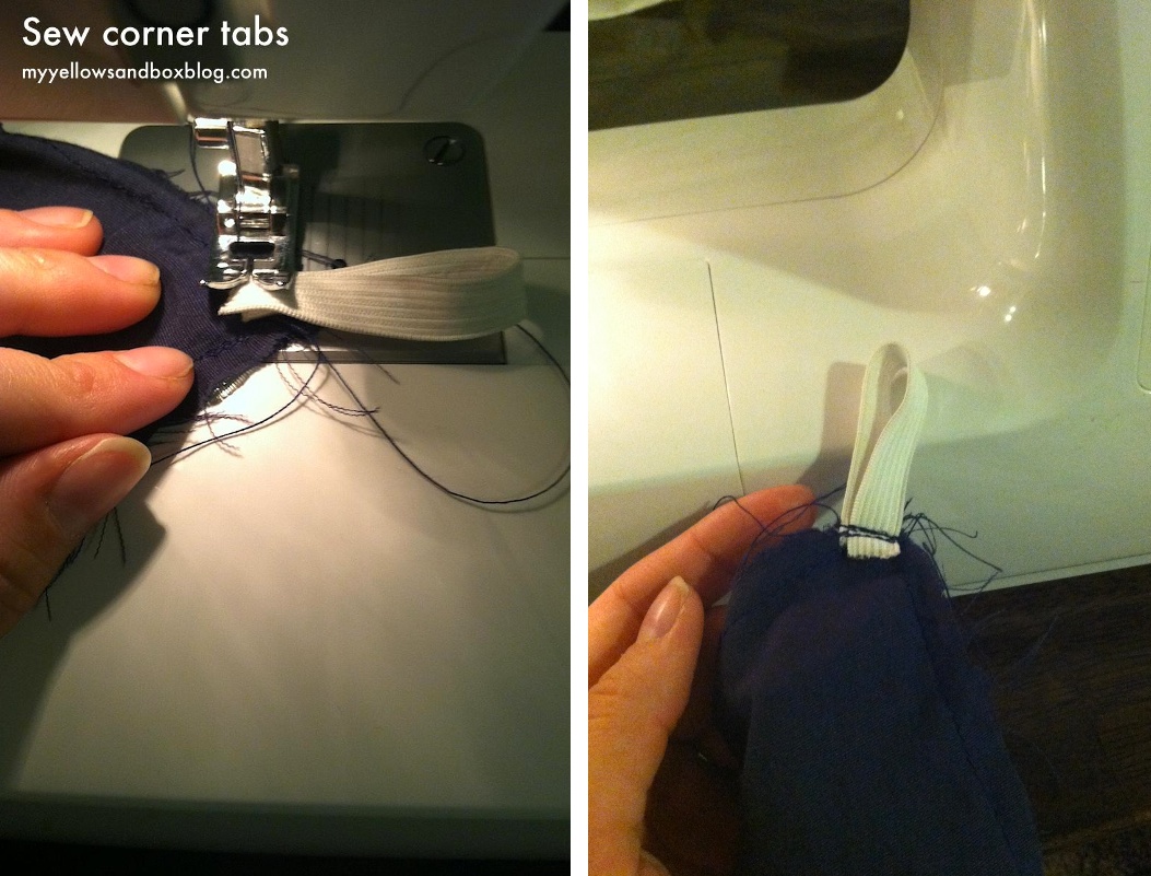 Use the left over elastic you have from the fitted sheet and sew in some corner tabs. You can then use a safety pin to adhere the comforter into the corners of the duvet. That way your comforter won’t slip and slide. And no, I didn’t trim my thread. Because I’m too lazy for unnecessary things like that!