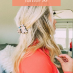 You will easily fall in love with this hairstyle because it is SO cute and literally takes two seconds to put together! This is for those days when you don’t have the luxury to style your hair for the day. Plus, it’s a lot of work to style your hair every single day, as far as curling or flat ironing. It’s better for your hair to give it a break from all that heat, and this small clip hairstyle is a great option. (Click here for more no heat hairstyle ideas.)