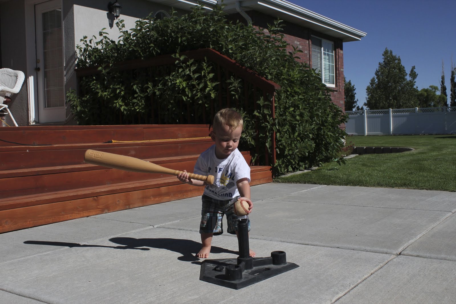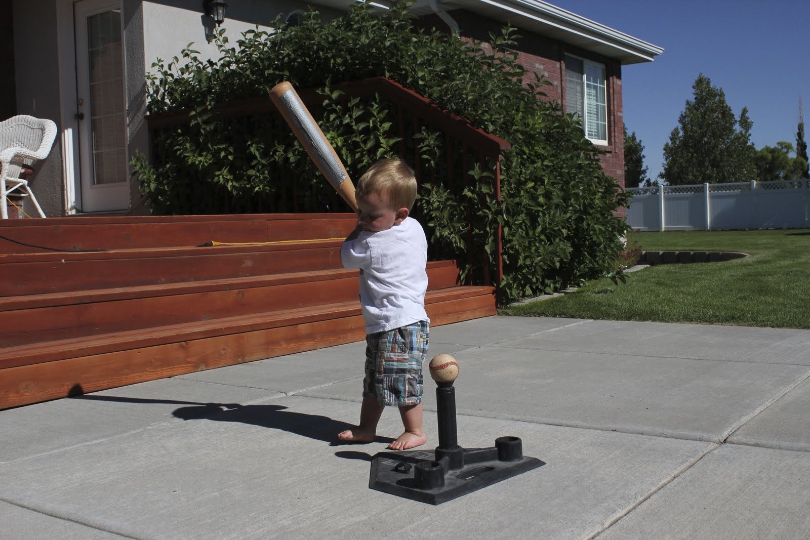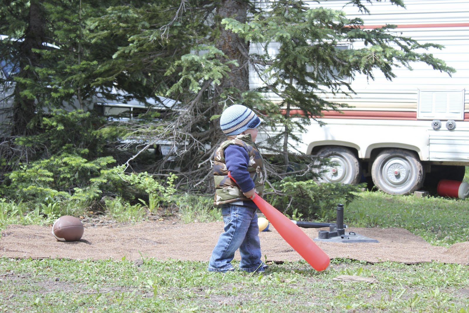 We rode the four wheeler for hours and hours and when we’d get off he’d scream to get back on. When we wouldn’t take him he’d just crawl all over them trying to turn them on! It was either a four wheeler ride, throwing rocks into the stream, or swingin’ his bat!