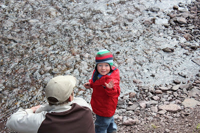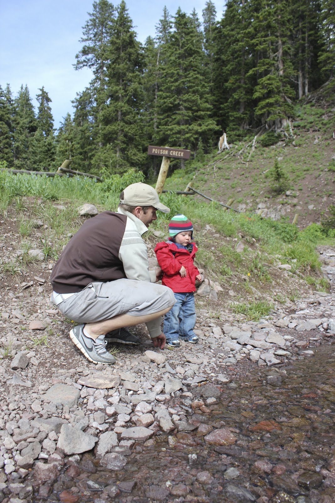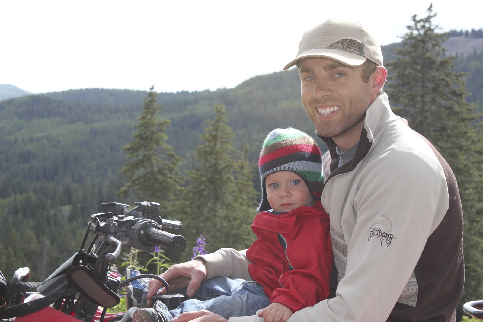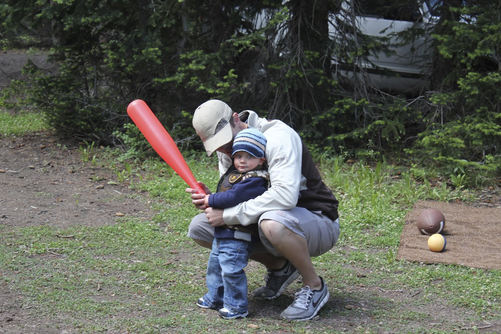 We rode the four wheeler for hours and hours and when we’d get off he’d scream to get back on. When we wouldn’t take him he’d just crawl all over them trying to turn them on! It was either a four wheeler ride, throwing rocks into the stream, or swingin’ his bat!