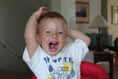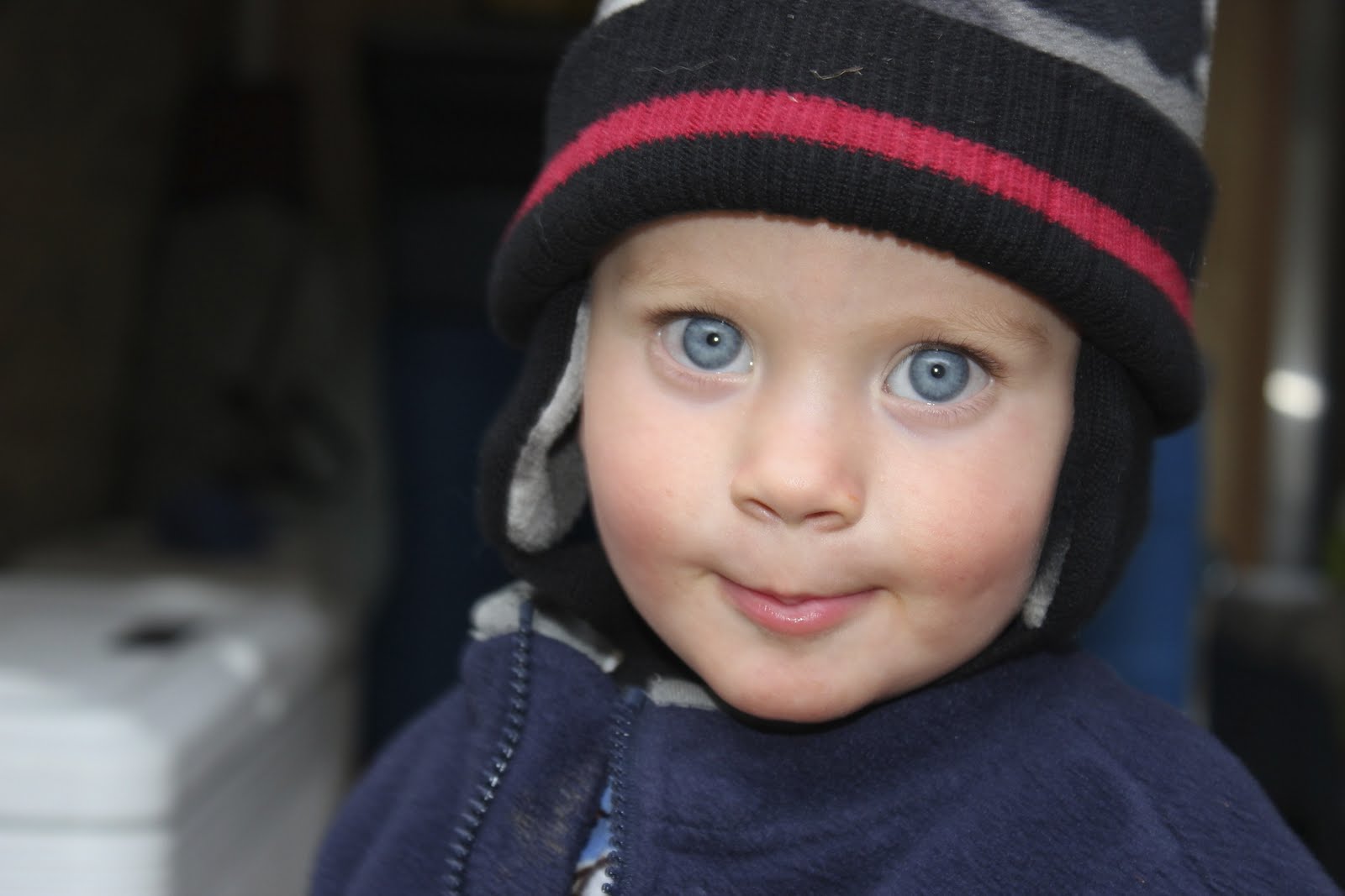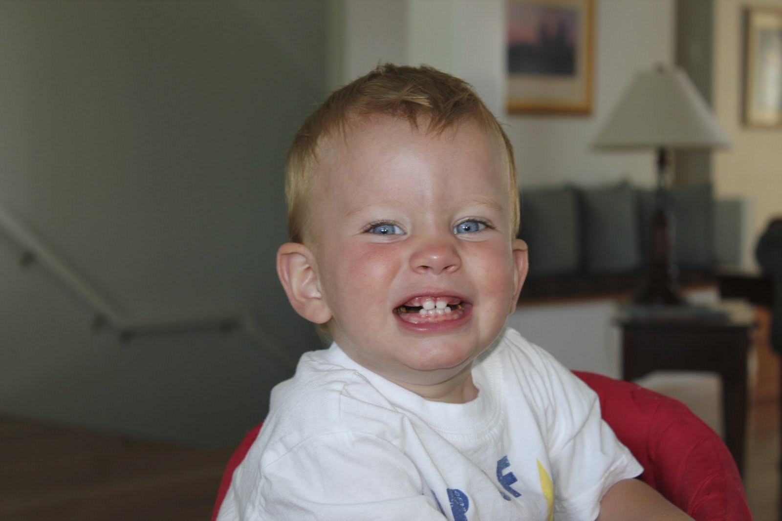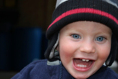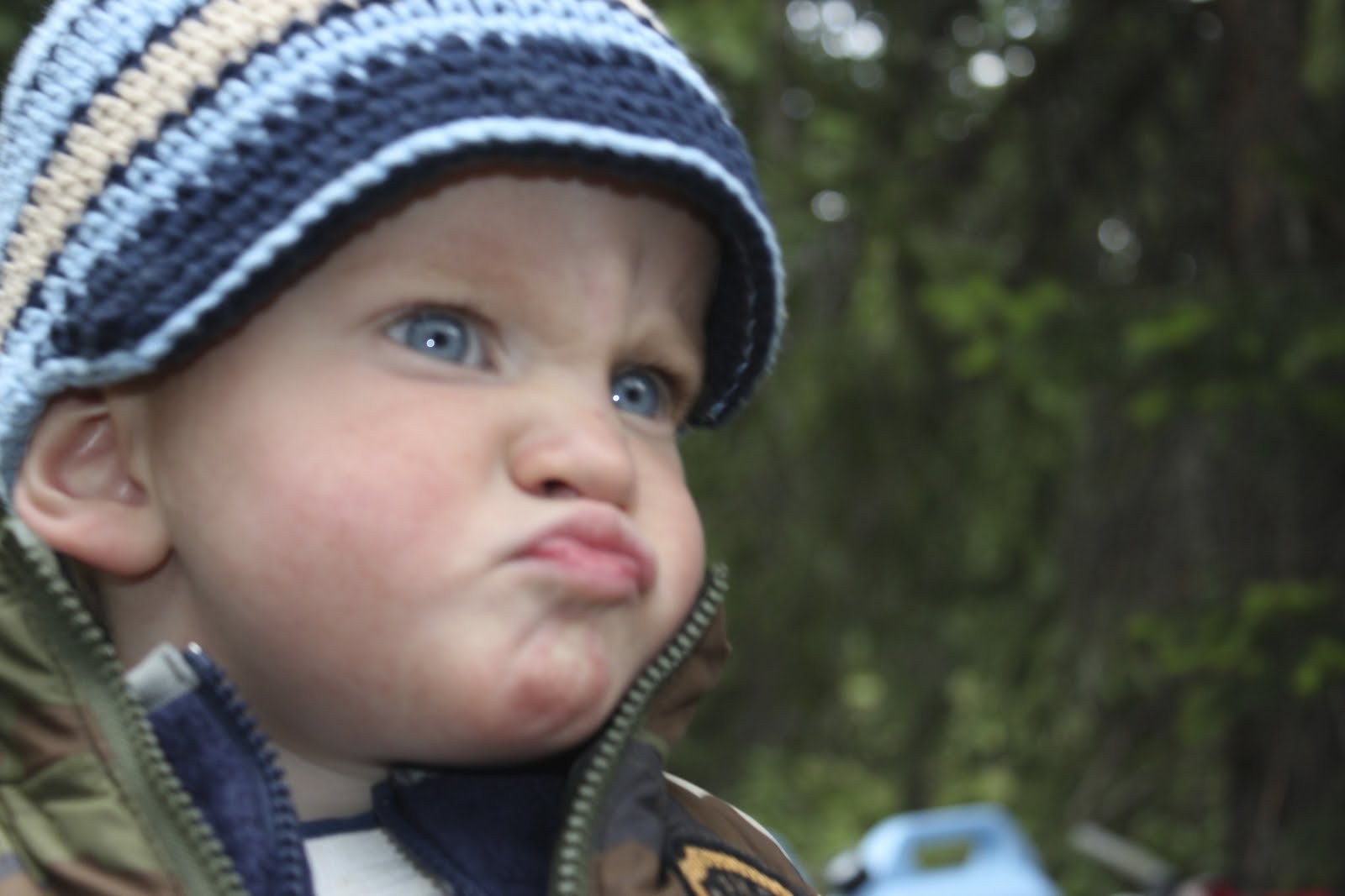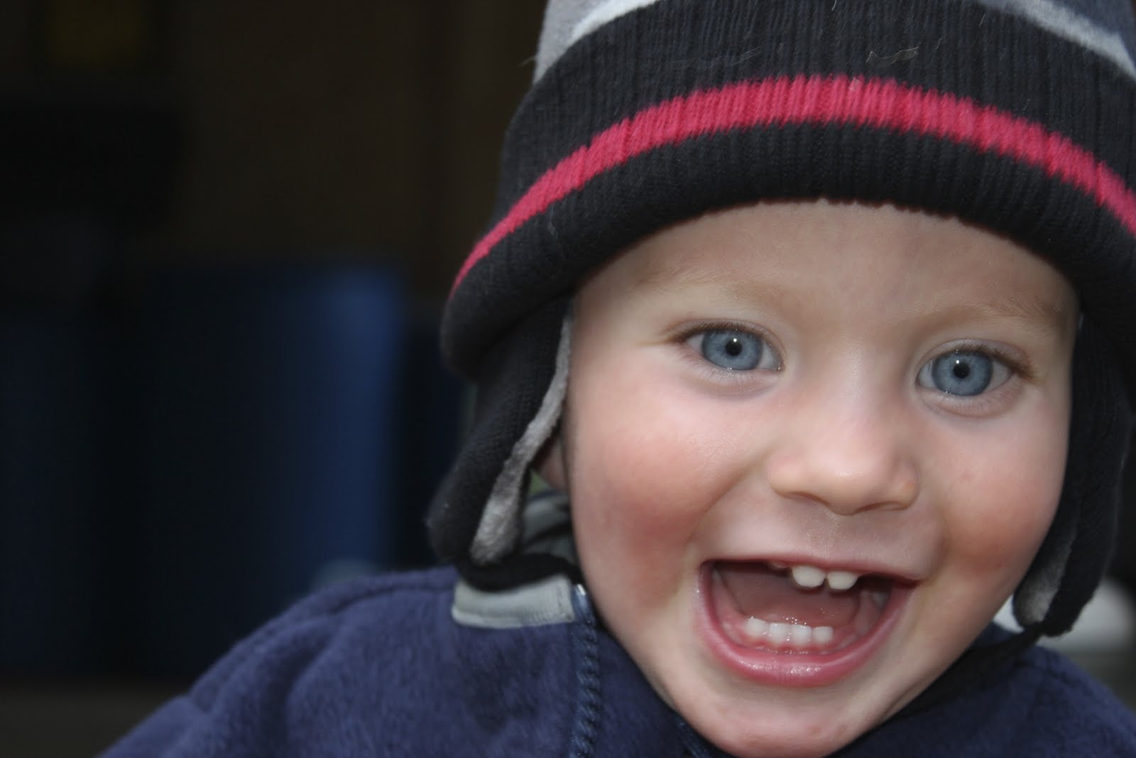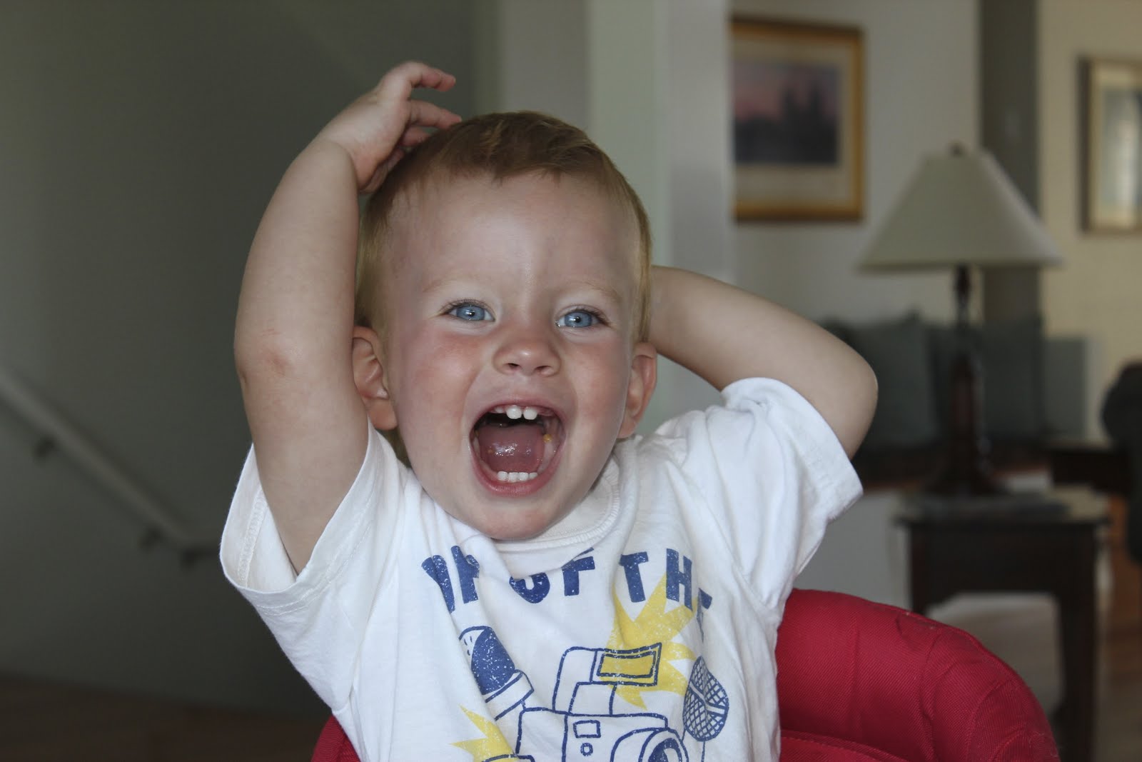 He makes this face all the time! When he wants to smell something, blow his nose, blow his “hot” food (yes, he blows his hot food with his nose ha ha) and when he wants to say any word with an M in it!! Silly boy. Sorry the picture’s a little blurry!
