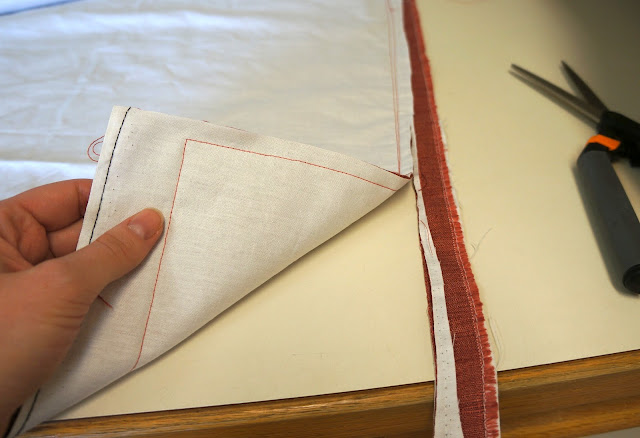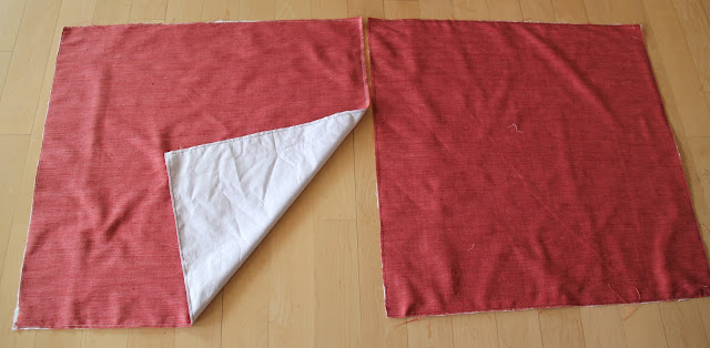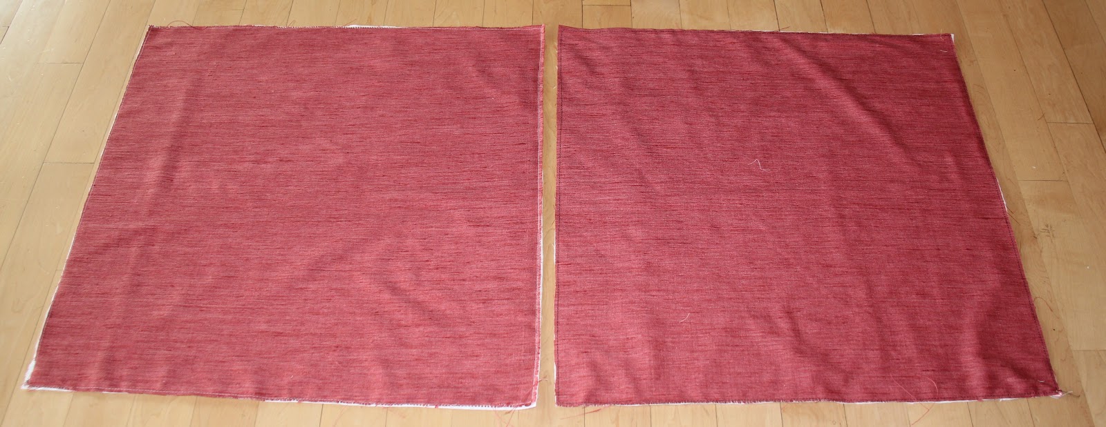 Step 1: Cut out your fabric and sew it to some cheap muslin. My pillow insides are 26×26″ so I cut my fabric 26×26″ taking into account seam allowances. It’s nice to have a smaller cover so that the insides are nice and fluffy! So if your pillows are 20×20″, cut out your fabric 20×20″… get it?!