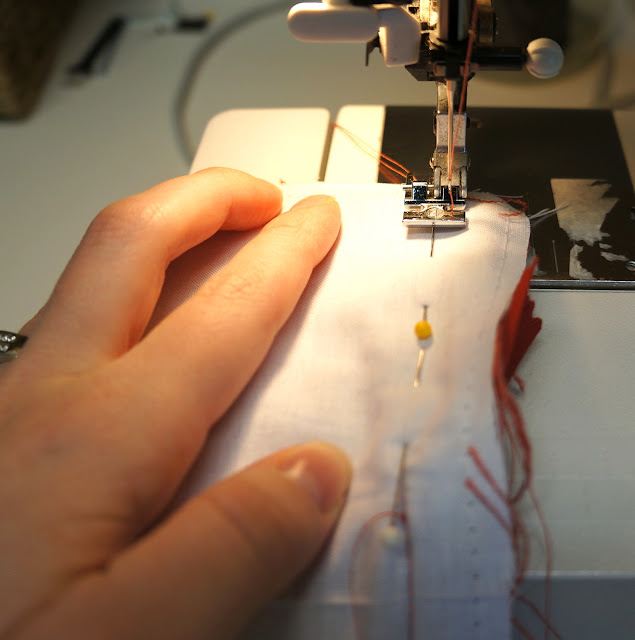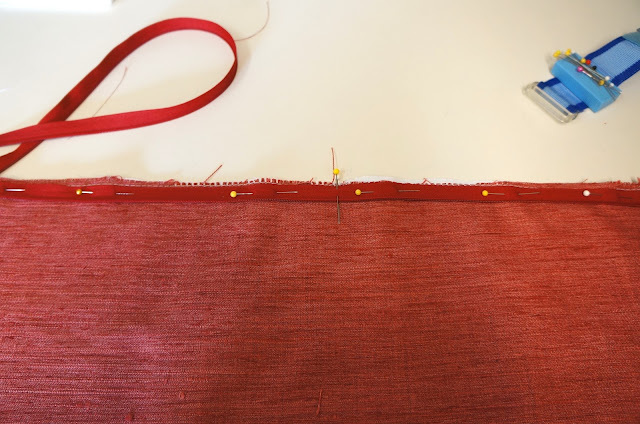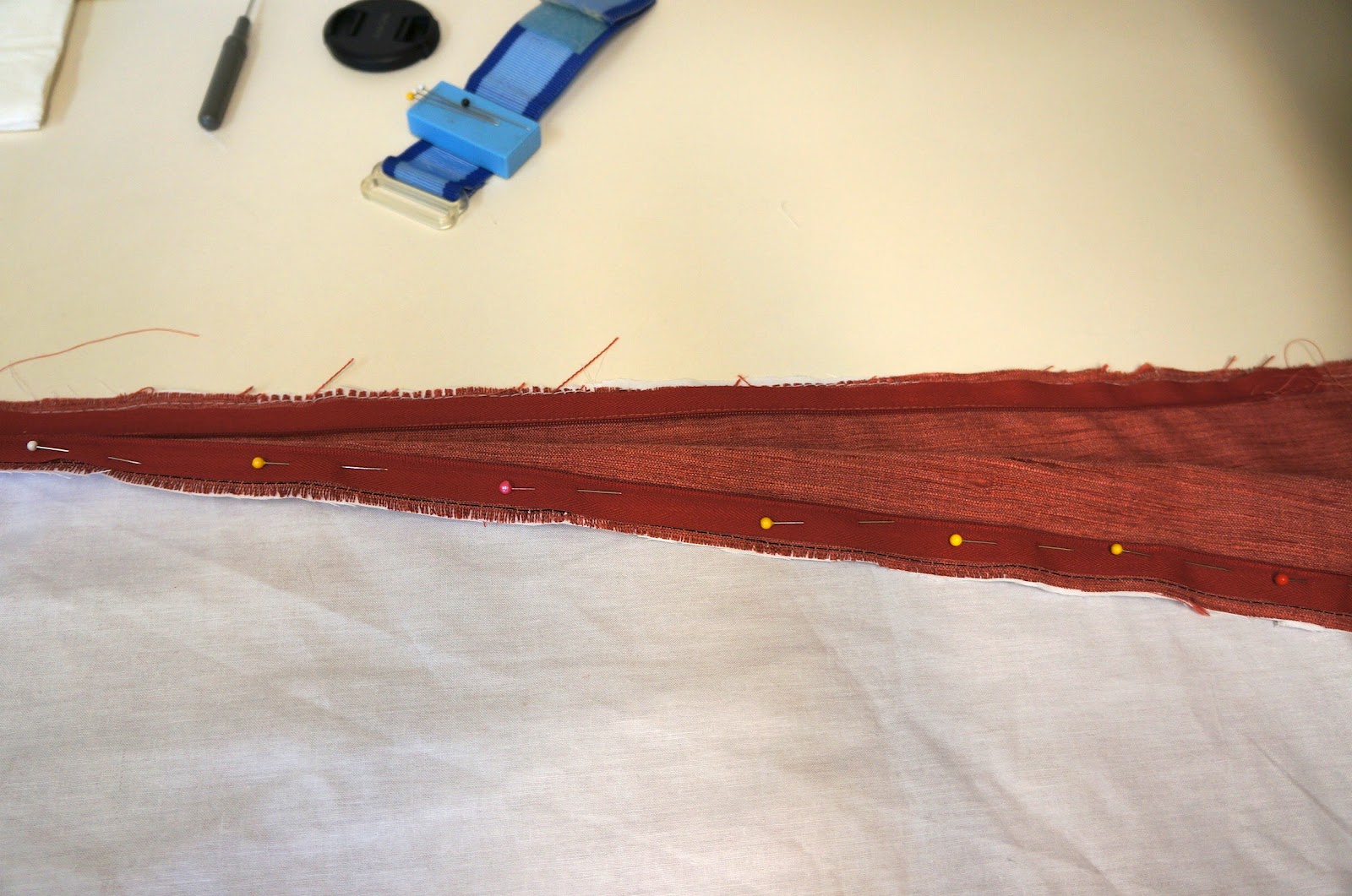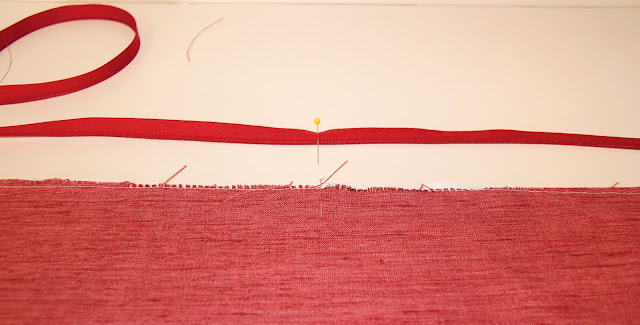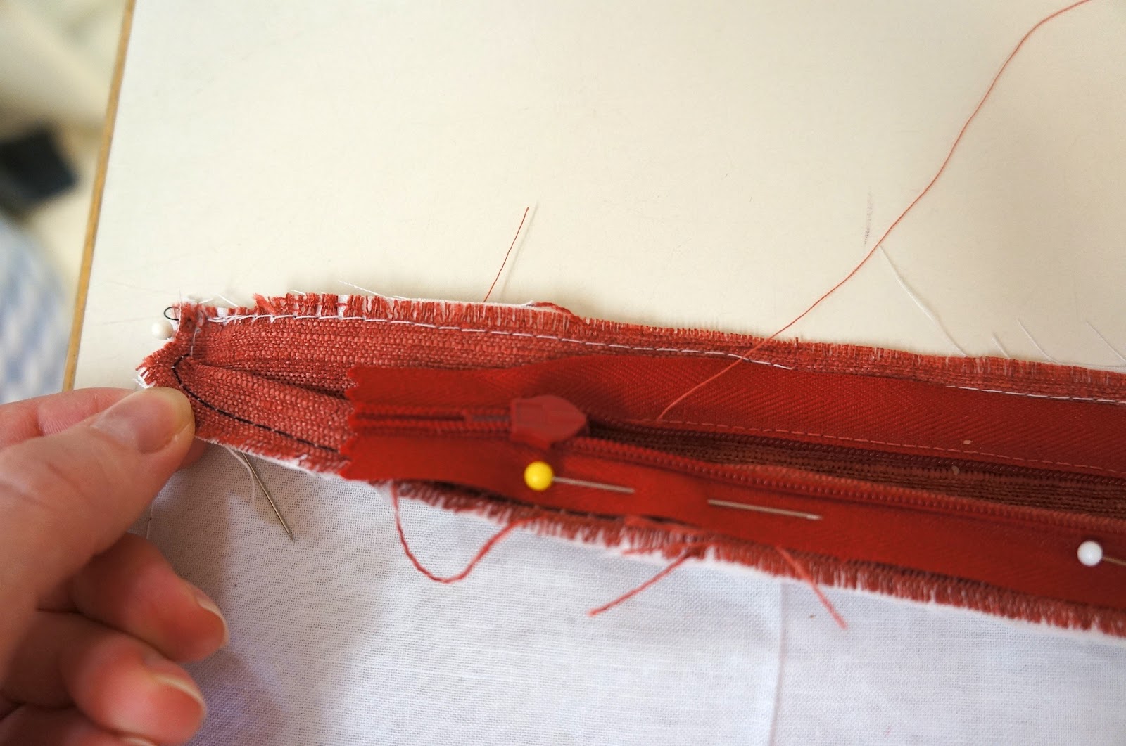 Step 4:Pin the other half of the zipper in place. Now this part is a little tricky. You have to make sure you’re pinning the zipper on the right way or you’ll end up unpicking.