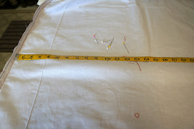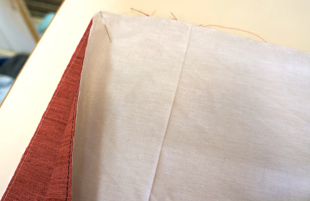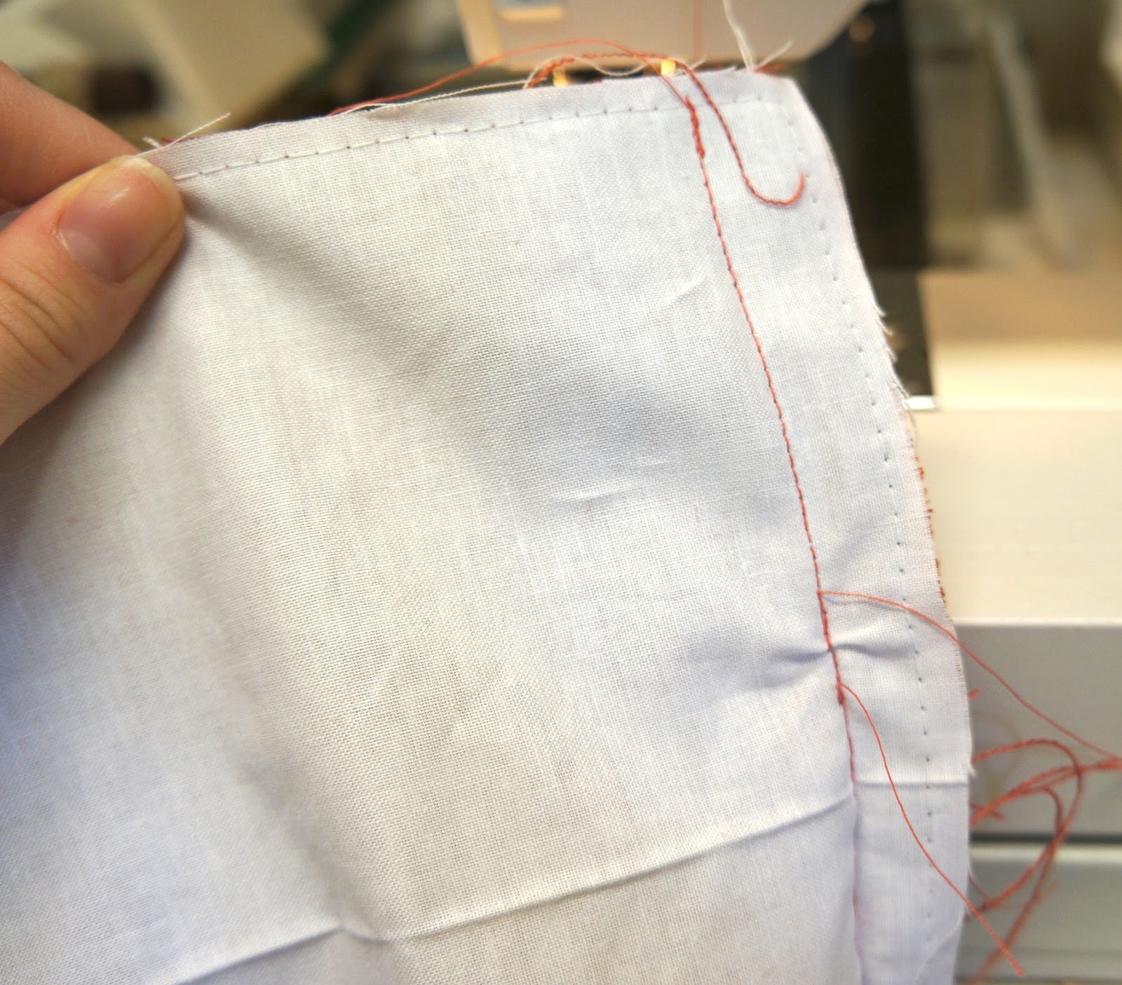 Next you’re going to get your other side of fabric and put right sides together. That means you put the two sides of your fabric that will show together and pin. If you backed your fabric in muslin, you should see the muslin.