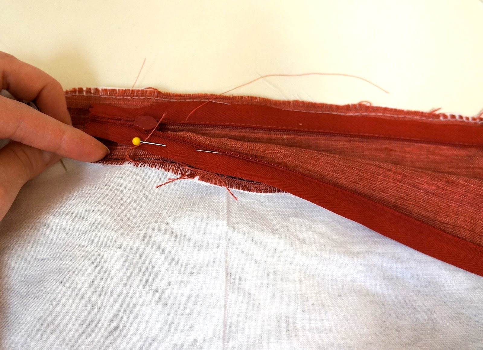 Now finish pinning and sew the zipper on just like you did with the first one.
