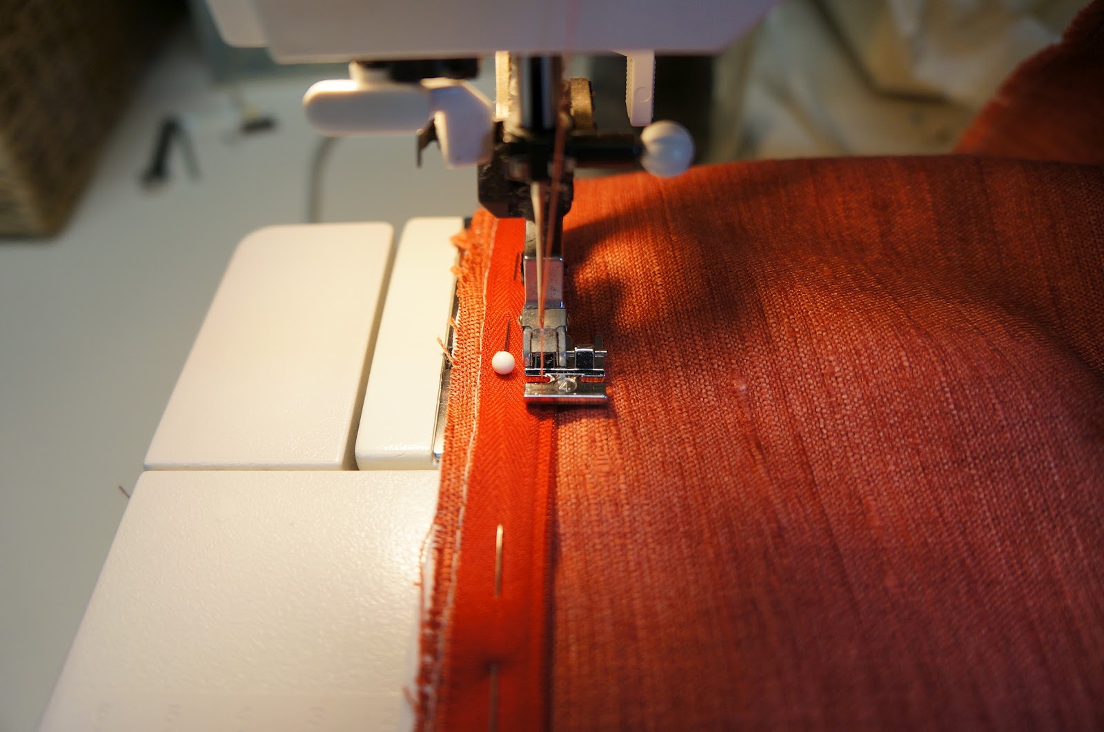 Sew right along the edge of the zipper. If you get too close the zipper won’t close. You can always go back and sew it closer. I just sewed right on top of the zipper seam. You should be able to see the threads on your zipper… ya know, where you uncurled the teeth?! Just look at the picture!