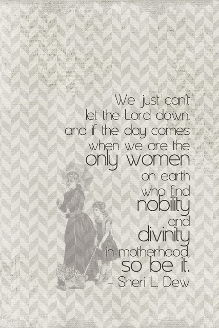 We just can’t let the Lord down. And if the day comes when we are the only women on earth who find nobility and divinity in motherhood, so be it.