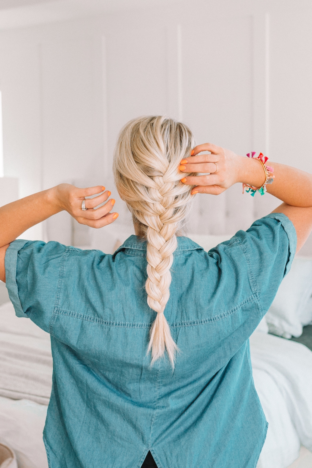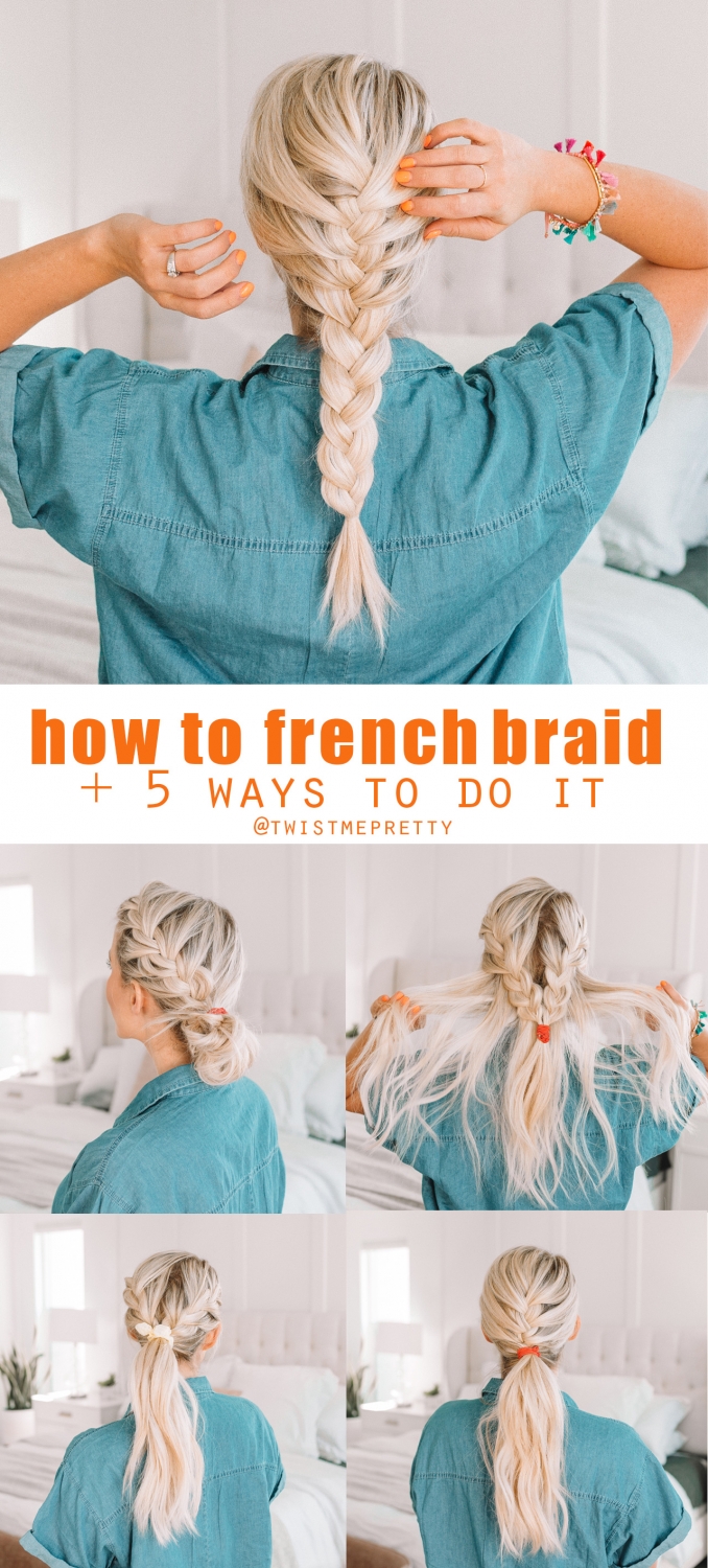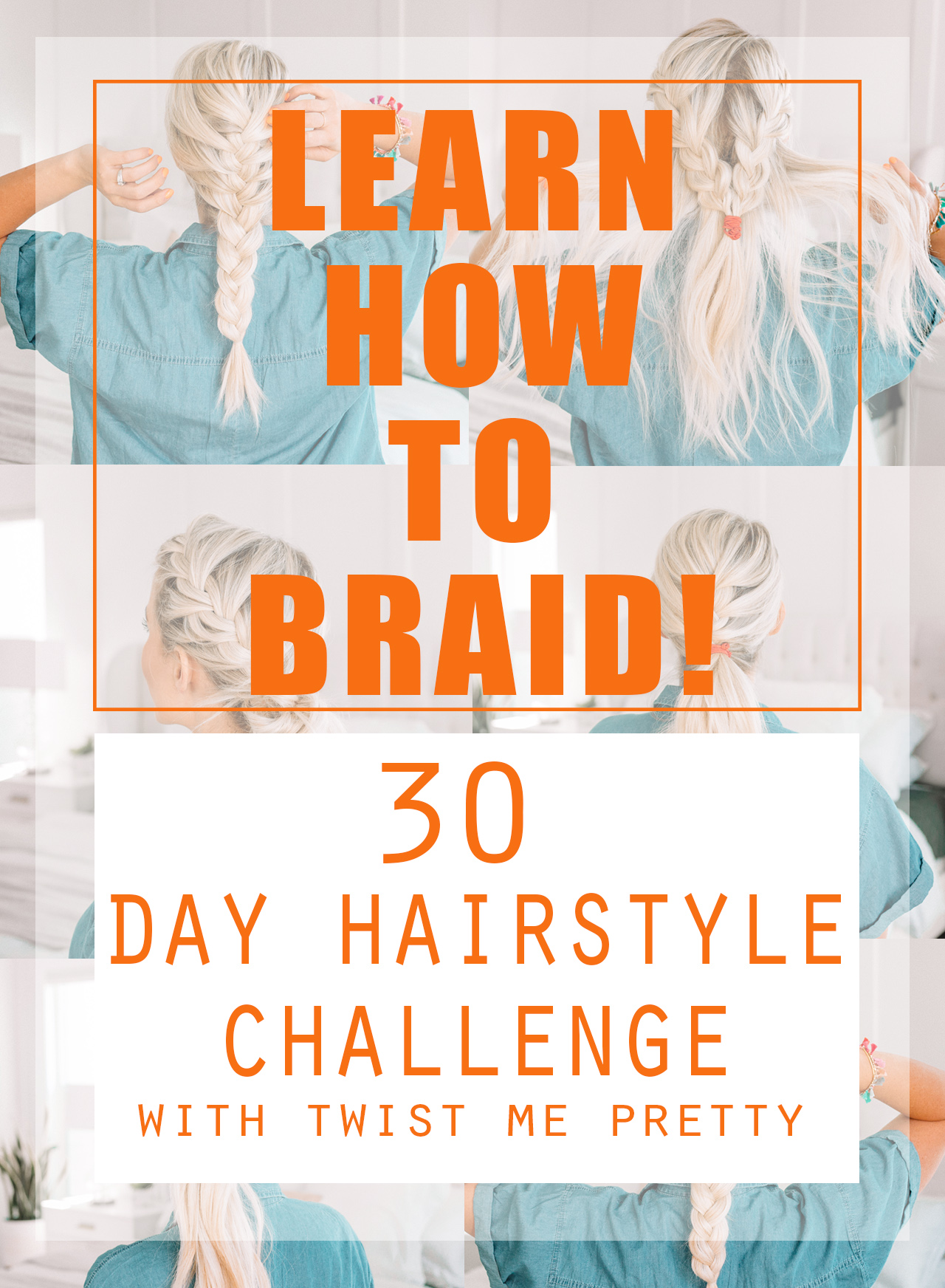 Today I’m teaching you how to french braid and throughout the rest of this week we’re going to work on different french braided hairstyles together. I’ve rounded up my very favorite tutorials and compiled inspiration + tips and tricks in my newsletter. I’m not sure how long this challenge will stay free, it’s taken a GIGANTIC amount of work to prepare everything!!!! So subscribe to the newsletter RIGHT NOWWWWWW and I’ll send you an email every night of the hairstyle we’ll be working on the next day! The hashtag we are using is #30in30twistmepretty. I want to see what you’re creating! Throughout each week I’ll be selecting winners who are participating and sharing pictures and I’ll send them all a huge basket full of my favorite hair supplies. My favorite bobby pins and elastics, hairspray, shampoo and conditioner, honestly anything that I’m currently loving!!! So do this with us, it’s free for now and you have NO EXCUSE not to!