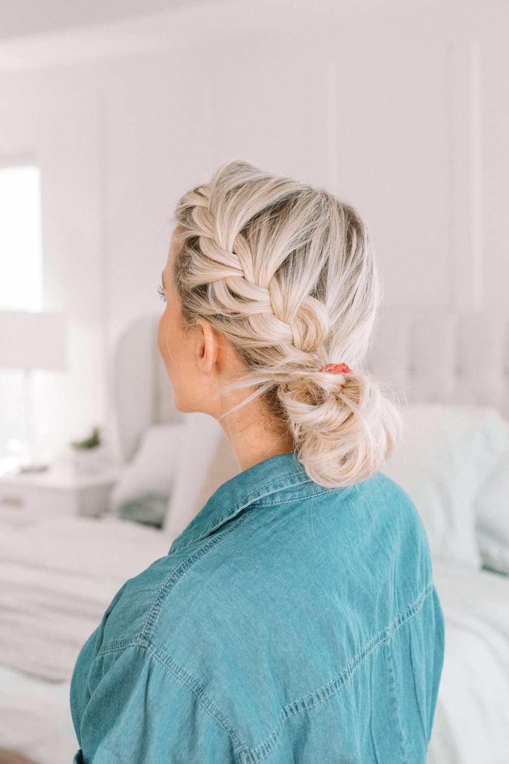 I think the easiest way to learn the french braid is in this hairstyle below. It’s behind your head so you can’t see what you’re doing and that’s exactly what we want!!!