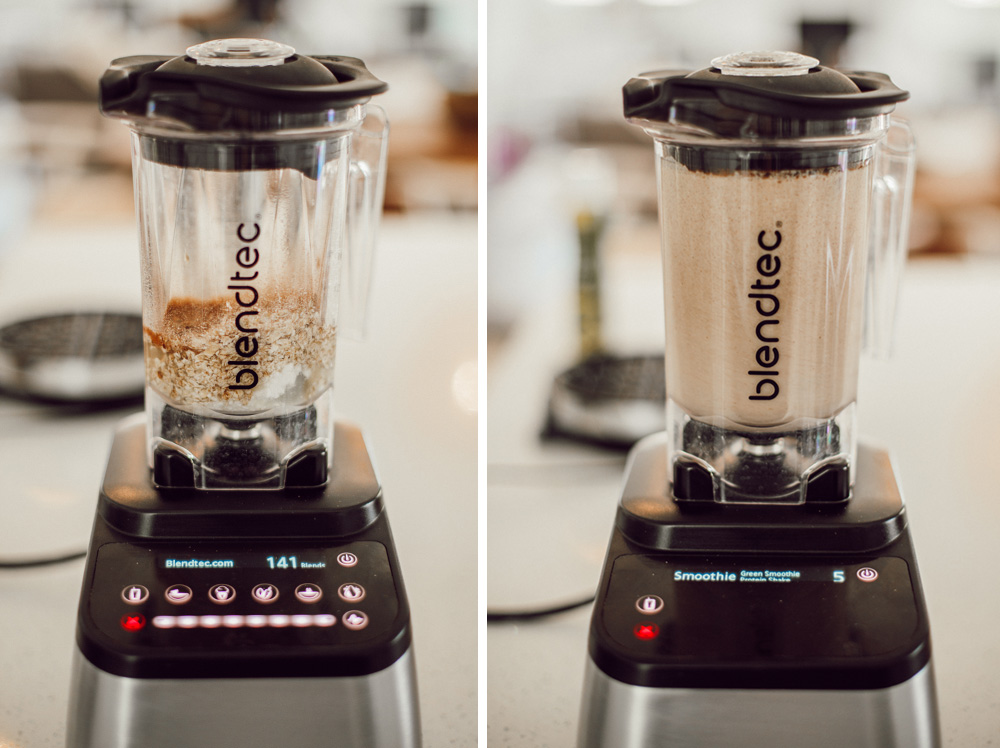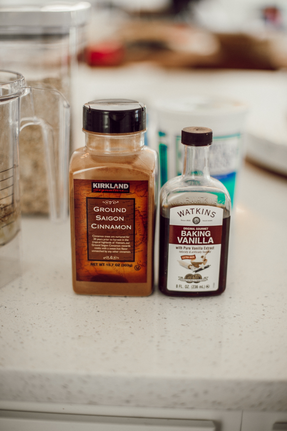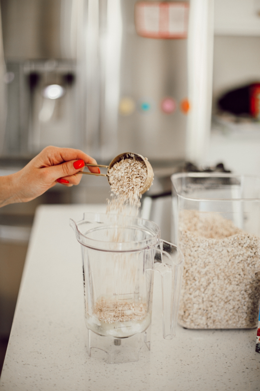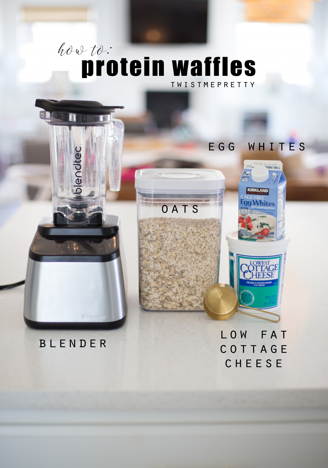 A blender, oats, egg whites, low-fat cottage cheese and then you’ll want some cinnamon and vanilla for flavor.