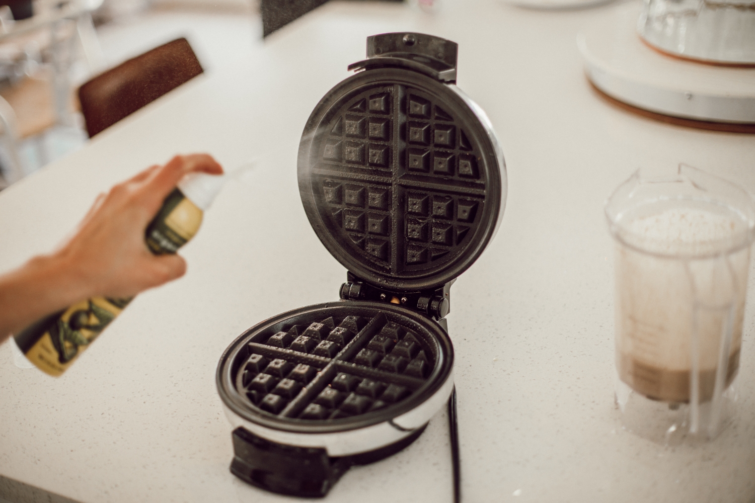 HOW TO MAKE PROTEIN WAFFLES!!!!! Oh man, can I just say that these babies have single handedly kept me on plan with my macros? I’ve been craving sweets somethin’ fierce lately and before binging on an entire batch of cookies, I thought I’d give this recipe my sister told me about a try. I’m not sure where it came from or who invented it but they’re stupid easy to make and each waffle has 3 grams of fat, 21 grams of carbs and 21 grams of protein. Not to bad, eh?!