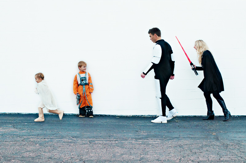 Darth Vader: c/o Buy Costumes | Storm Trooper: c/o Buy Costumes | Princess Leia (technically Amidala): c/o Buy Costumes | Luke Skywalker: c/o Buy Costumes | Baby Ewok’s: c/o Buy Costumes (I snipped the top half and sleeves off a brown shirt and cut little holes for the ears to add to the bear jumpsuits) | Photography: Lauren K Photography