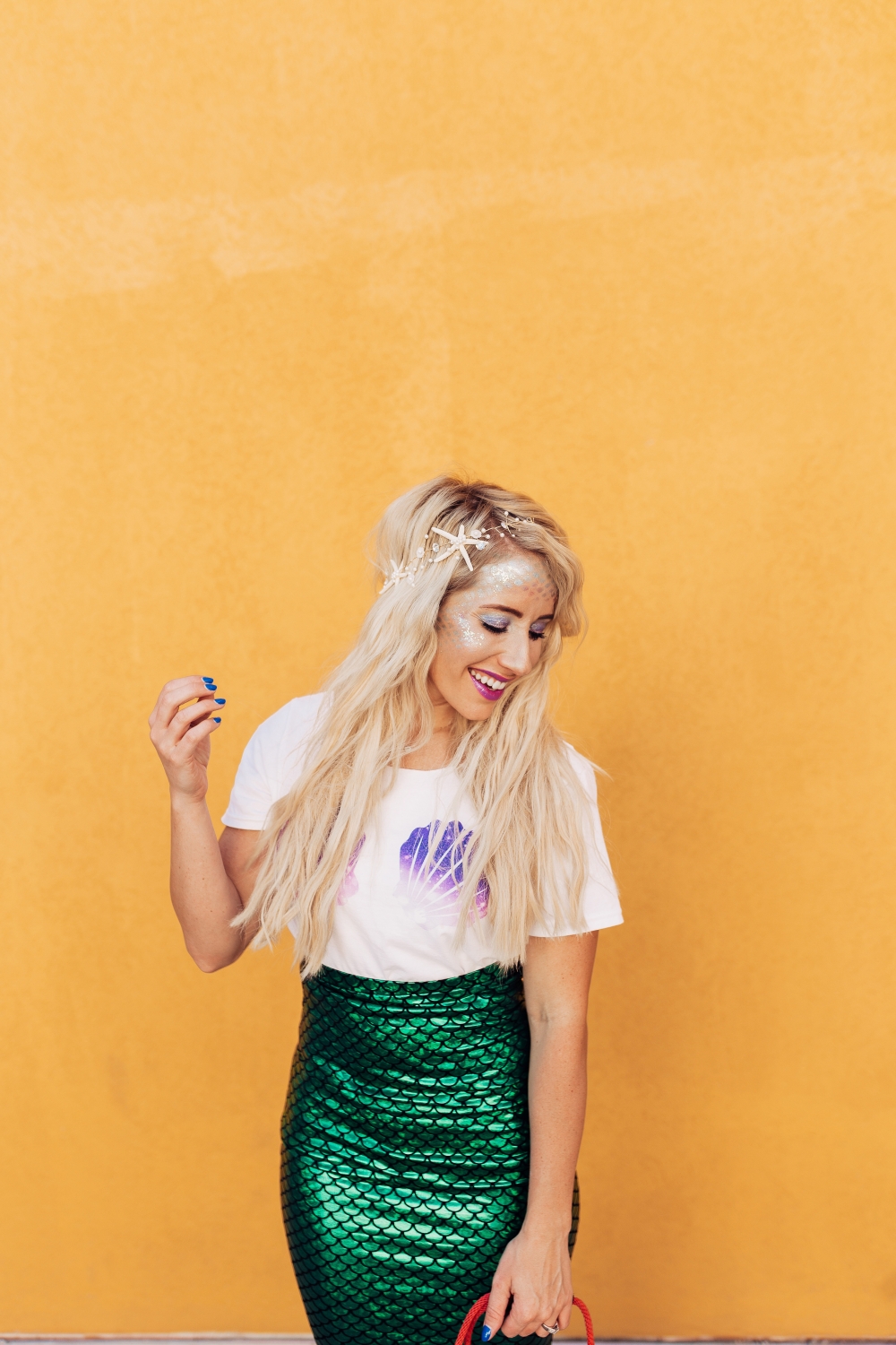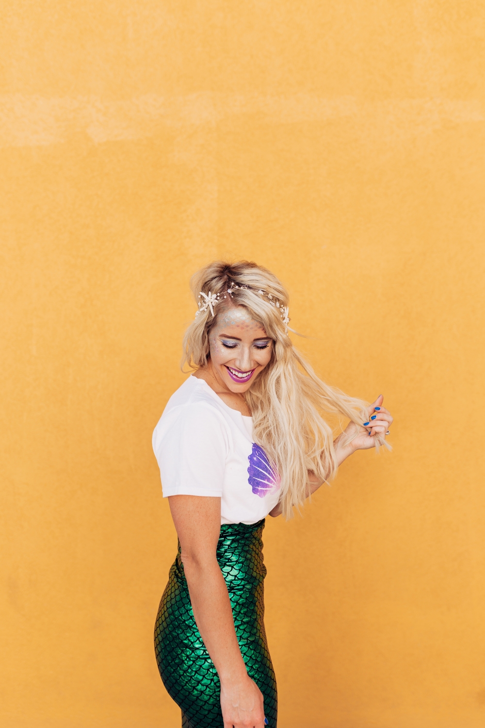 Mermaid tee — I cut the hem off the neckline but overall this tee was perfect!! Have you searched for a conservative mermaid costume? They don’t exist. I had to get creative and thought this turned out so cute!