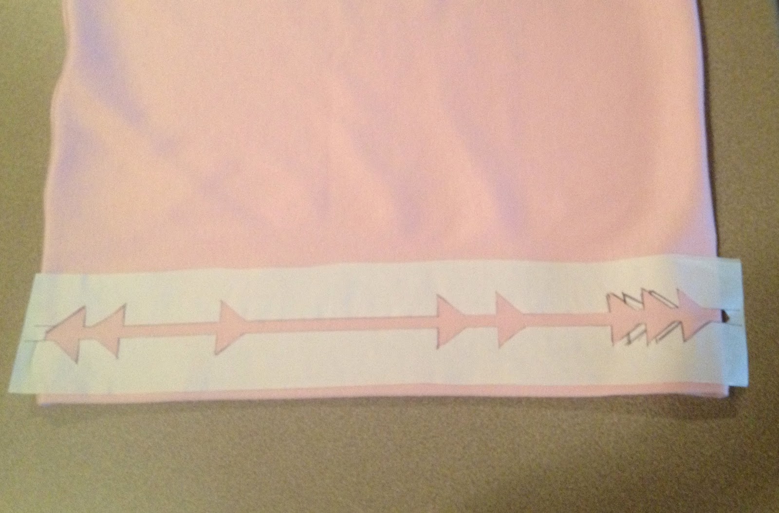 Step 2. draw 1″ tall arrows along your line, keeping them as similar in size to each other as possible. If it makes it easier, draw one, cut it out, and use it as a template for the rest. Once you’ve drawn the entire stencil, cut it out, leaving the ends uncut (as seen below on the left).