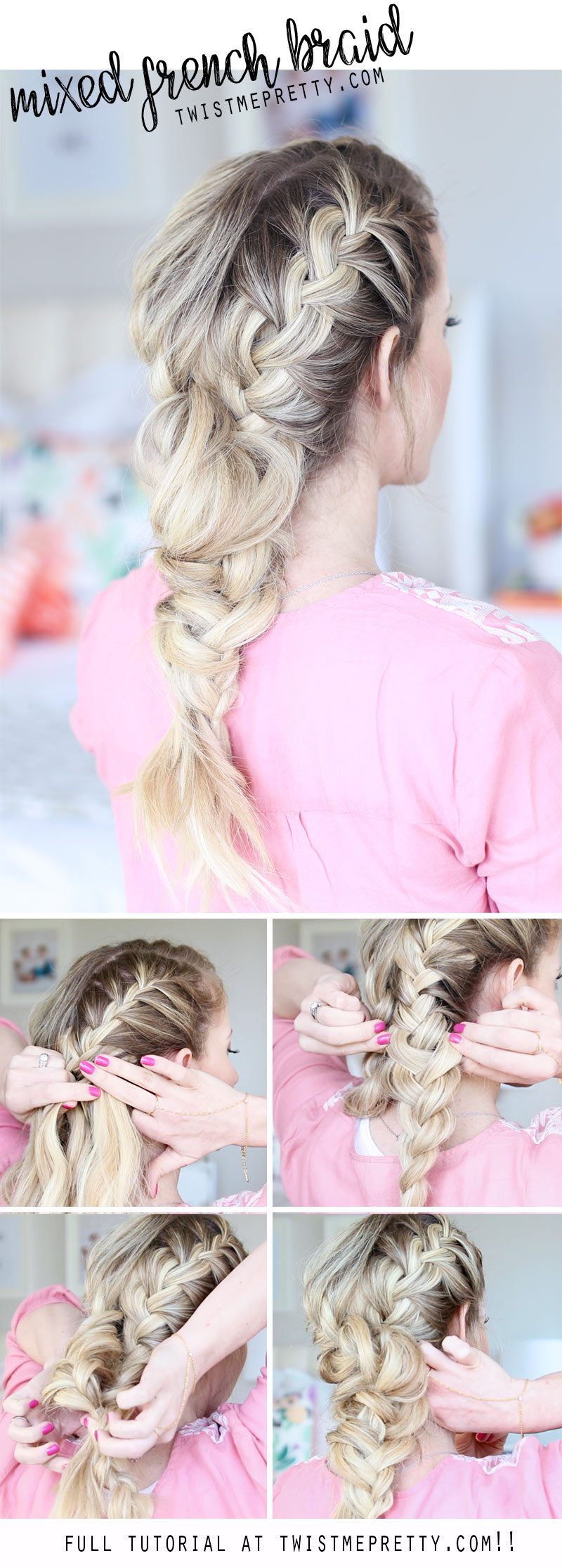 I digress! Todays hairstyle is such a fun mixed french braid and I hope you love it! I know Prom is coming up so I wanted to share something a little on the fancier side but if you keep the braid tight instead of pulling it out so much it’d be the perfect hairstyle for the mom/student/worker bee on the go.
