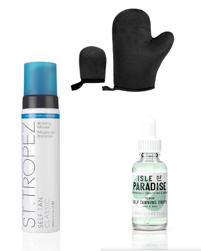 For the rest of your body, I love to use a self-tanning mousse. It’s easy to apply with an applicator mitt and because it’s a mousse it won’t get everywhere.