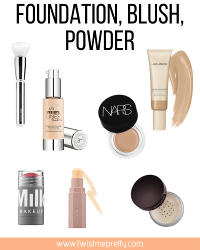 If I’m doing a super quick face, I’ll skip the foundation and use a tinted moisturizer in place of it. For my summer 5 minute makeup routine, I use a brush to apply my foundation. I like to buff it into my skin with circular motions. After I do my foundation, I contour my face with the Fenty contour stick and then blend it out with a dense Kabuki brush. I love the Milk Makeup lip & cheek stick for my blush, and I blend that in with a brush as well. Concealer comes after blush, and I set everything with translucent powder and a fluffy brush.