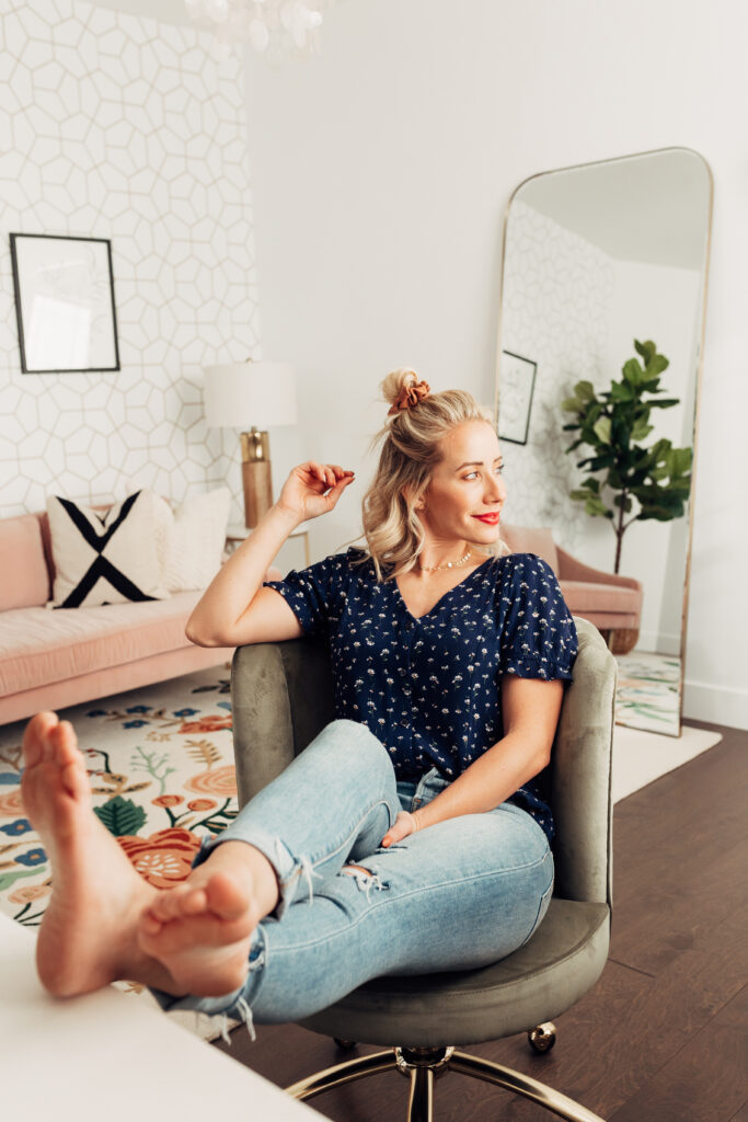 I want to give special mention to Article, Loomwell and Loloi for gifting us pieces for this room. I think my very favorite piece is the floral rug from Loloi. It just makes this room so unique and really pulls everything together. To order anything from them you’ll need to go through a designer so if you’re interested in anything on their site make sure to reach out to Kelsey! The rug upstairs in my master bedroom is Loloi and I’ve been highly impressed with their quality. If I’ve missed anything, let me know in the comments below and I’ll try to source it for you!