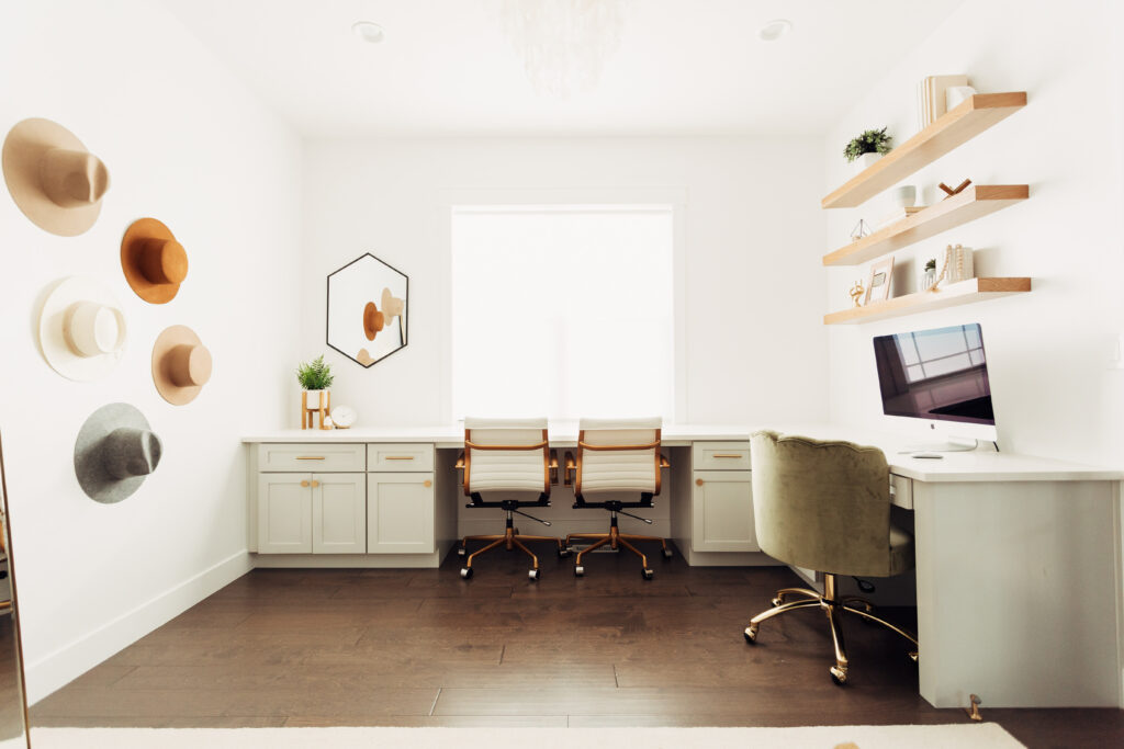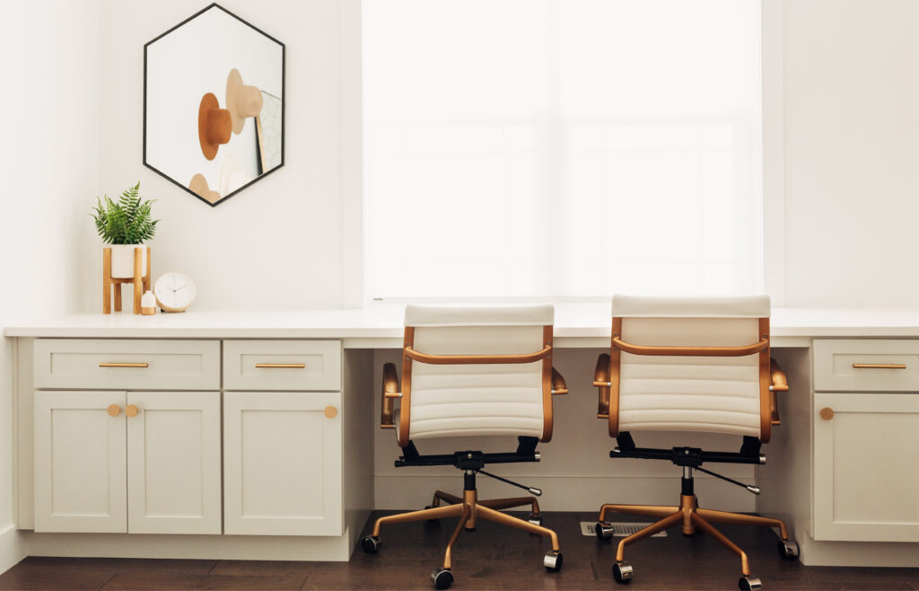 The third project that took some figuring out was the desk space. I knew I wanted a few chairs and enough desk space that my kids could come in and do homework or I could have assistants over to work in my office with me. It also why we added in the couch. I just wanted to have all my bases covered! The cabinetry is actually from home depot and then we used a white quartz on top. I think it turned out awesome and the kids do come in an color next to me while I’m editing or working through emails.