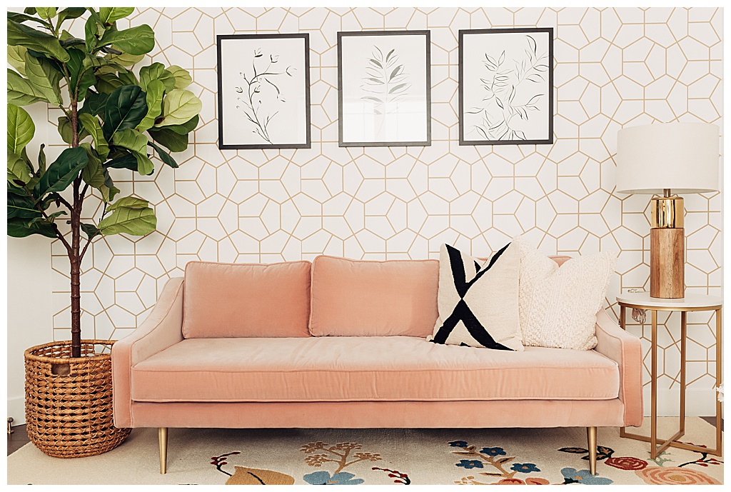 This was the first statement piece Kelsey secured for the room. I WAS OBSESSED. It’s a modern velvet couch from Article and the quality is incredible. I love how luxe it makes the room feel, it also gives it such a girly vibe but it’s still very grown up and sophisticated.