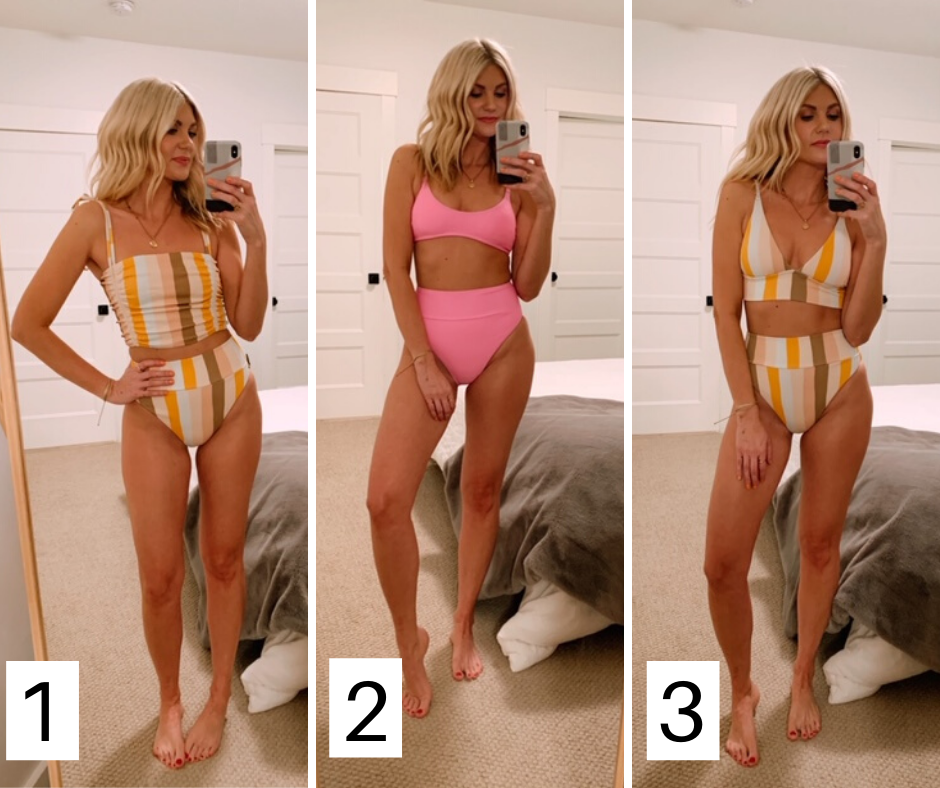 To say I’m obsessed with aerie is an understatement. I’ve only really “discovered” aerie swim in the last couple of years. But I love them so much that I had to make them the number one spot in my top 5 online shops for swimsuits. The swimsuits are always super comfortable and great quality. They carry so many classic silhouettes and super fun colors and prints. Aerie swim has BOGO free or 50% off sales quite frequently and even at regular price they are great deals. Last year I got a couple of classic high waisted two piece sets and towards the end of the summer I sprang for a few more because I couldn’t get enough. This season I couldn’t pass up this darling striped number and this neon pink two piece.