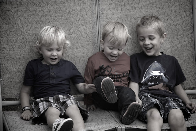 This picture defines the whole week. Greyson’s on the left acting like a total GQ model. Then you have Boston who is being a little stinker. He was so fascinated with all the toys and new bikes that we could not get him to happily do anything else! Then there is Hudson on the right. The most beautiful blonde haired mischieveious three year old EVER! Look at that face. He’s about to do something naughty!