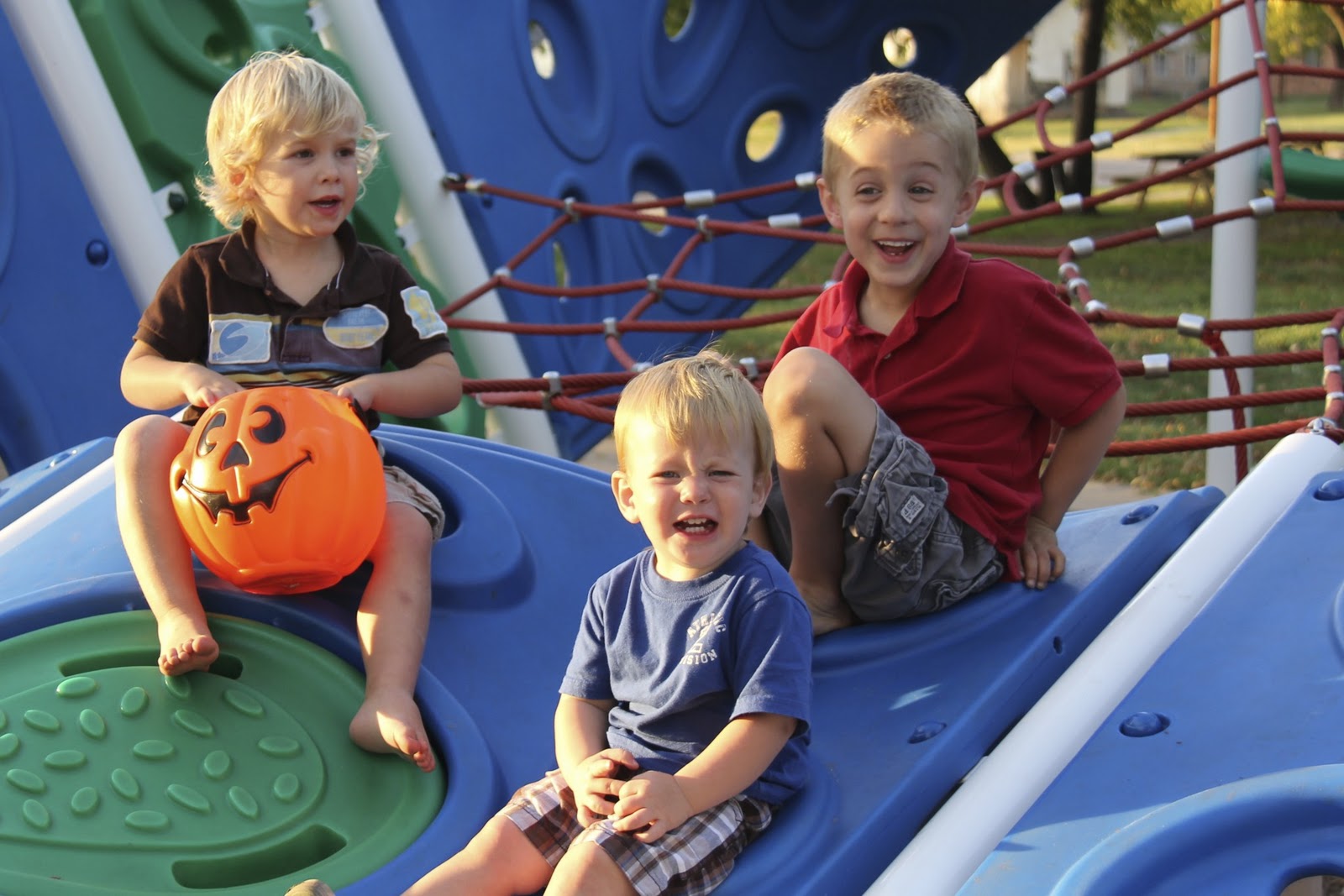 In every picture. Ha! Boston’s all upset we’re making him sit still. Hudson’s about to do something naughty (throwing his pumpkin at Boston) and Greyson is just cheesing it!