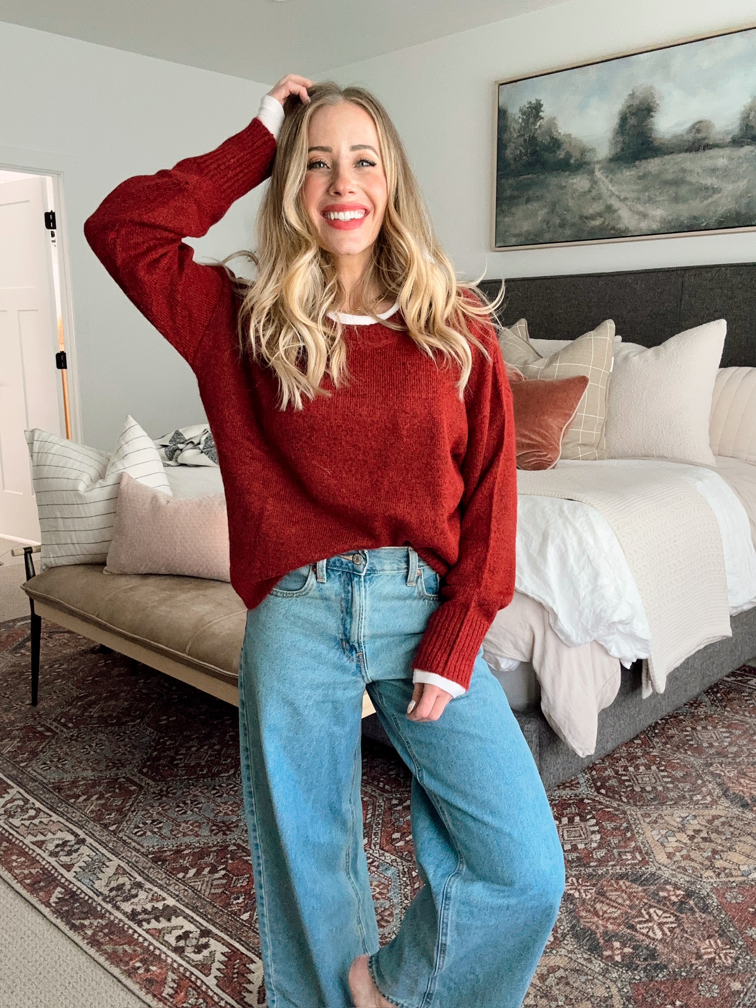 I love how you can so easily dress a crewneck sweater up or down for fall and winter! It’s the perfect cozy holiday outfit, or you can easily throw on sneakers and run errands in it too!