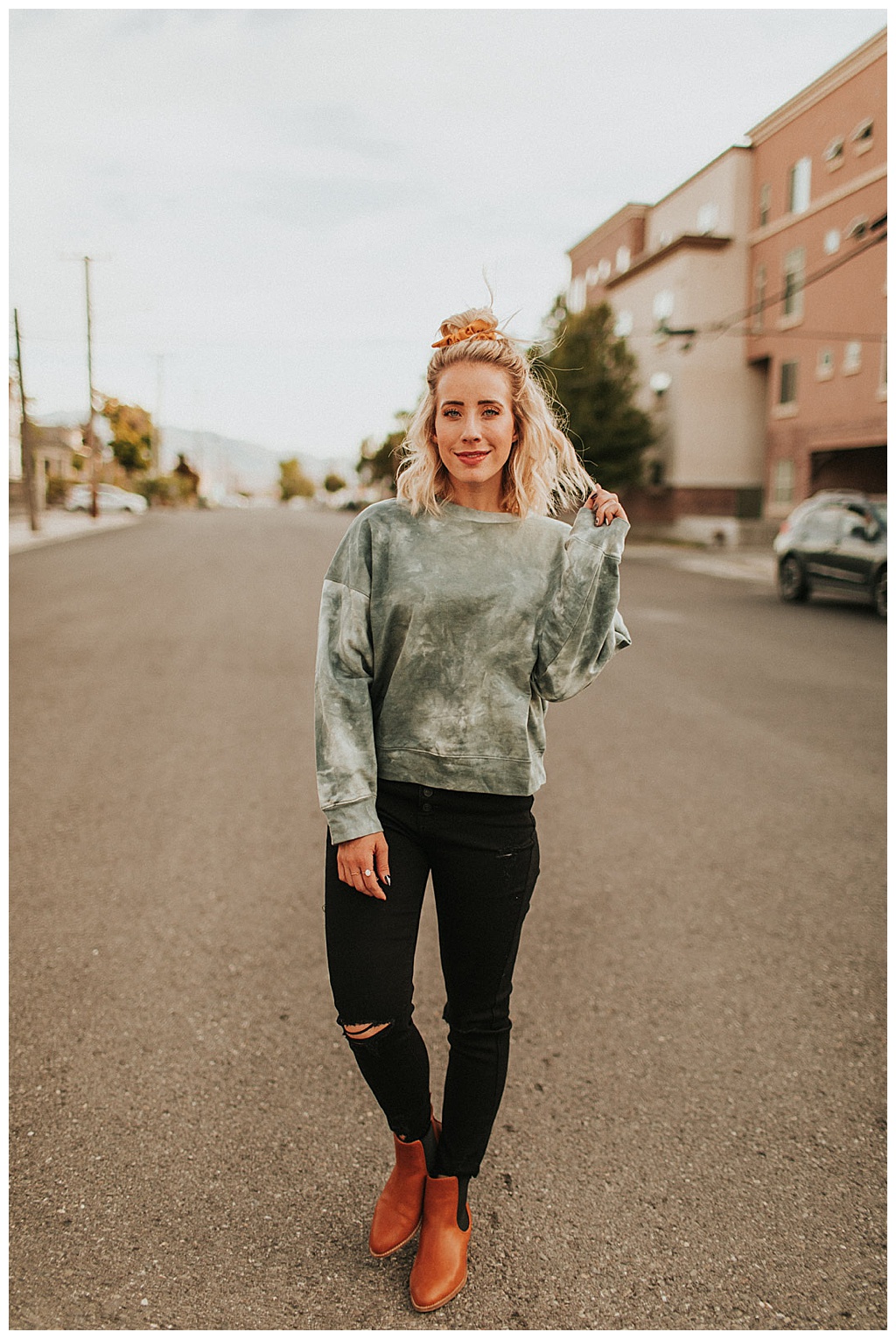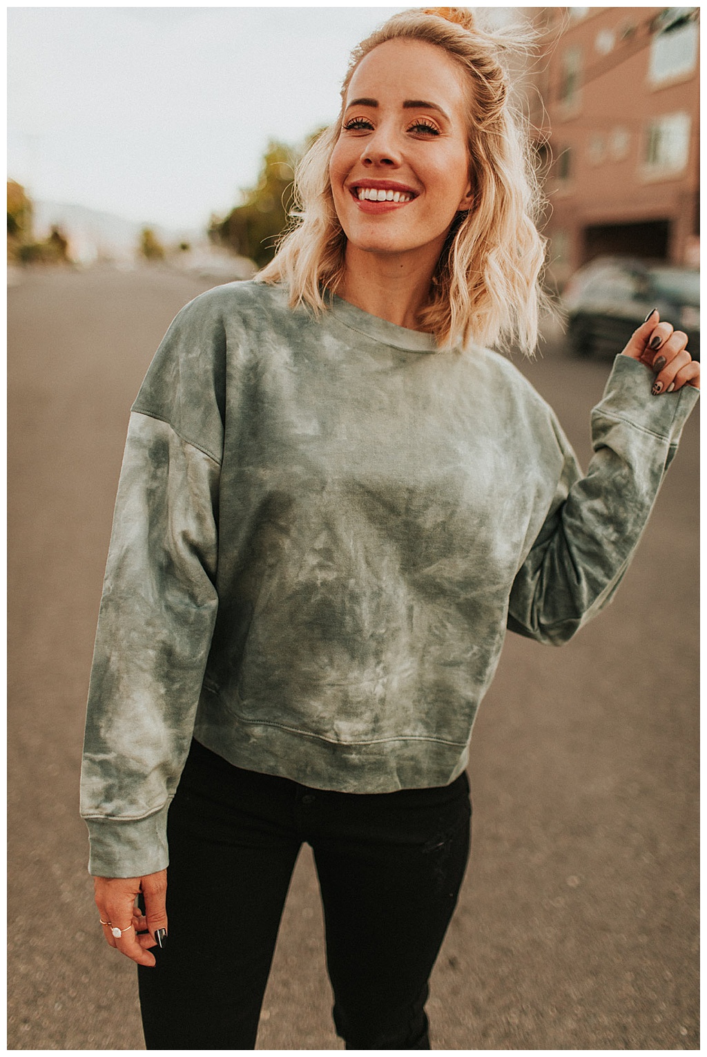 I LOVE this tie dye sweater because it is not a heavy sweatshirt material. It is thinner than that but it is thicker than a regular shirt. It’s perfect for layering too!