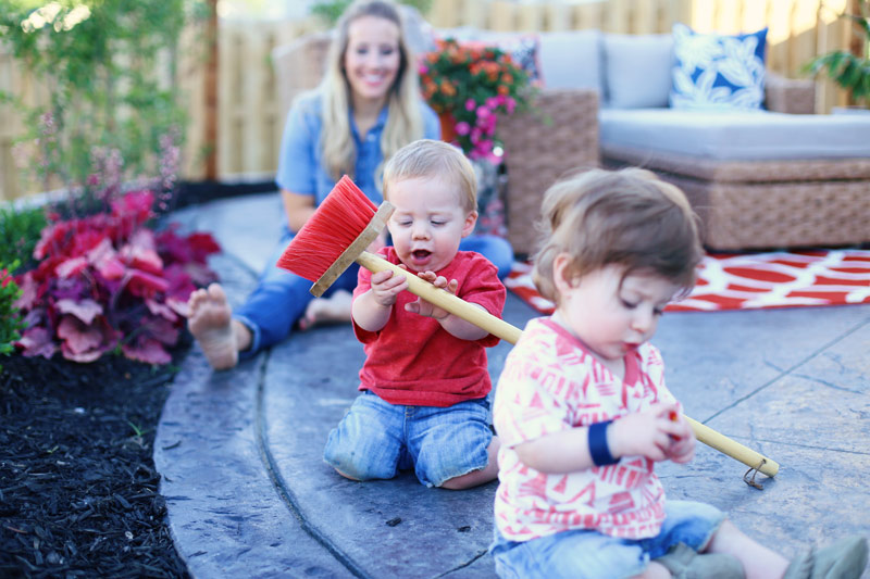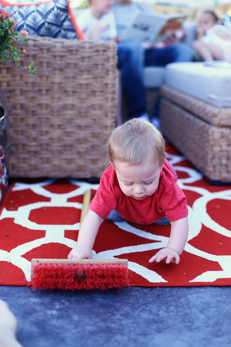^^ He’s obsessed with this broom! We got it from world market with a little wheel barrow and shovels!