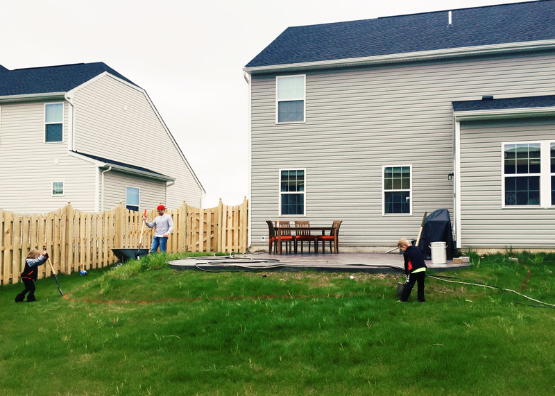 I’m not gonna share much of the before right now, but here she is. In all her glory! You can tell our landscapers did a phenomenal job leveling out our ground… ugh #theworstjobever. Our main issue was the transition from the grass to the patio. As you can see it wasn’t too inviting. We couldn’t get the grass to grow in areas and we knew if we just put in a flower bed we’d have mulch rolling into the grass because of how steep the incline was. So we had Brian’s parents and brother come out one weekend and together they built a beautiful retaining wall. Now I have some gorgeous flowers beds and it’s finally a space we want to hang out on.