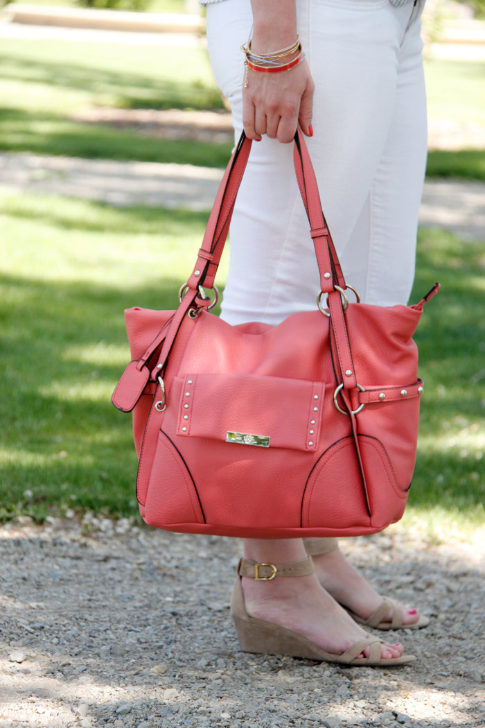 I’m really trying to embrace a more casual style this summer. I was going to wear these suuuper cute wedges but they’re really tall so I opted for the smaller more comfortable ones. These wedges I’m wearing are quickly becoming my everyday shoe. I found some copy-cats at Old Navy but they were so uncomfortable. These ones are really soft and the heel isn’t stiff at all. Also, do you guys recognize the bag? It was in a wish list post last week and I finally just bought it. I love the color so much, it seriously goes with everything!