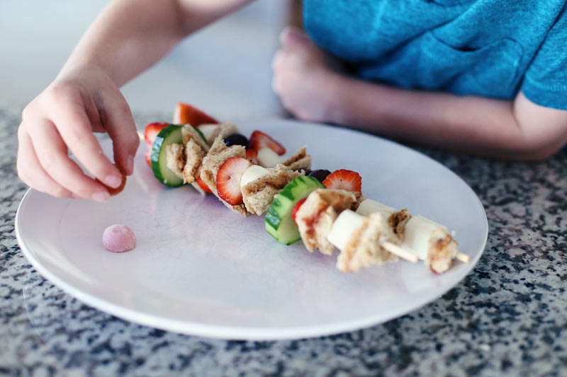 ^^ I buy the regular bbq skewers and I just let the kids go to town making sure they’re putting enough fruits and veggies on their skewer as they go.