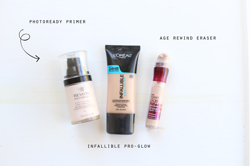 1// Priming with the Revlon Photo Ready Perfecting Primer and then using the L’Oréal Infallible Pro Glow in the shade nude beige.