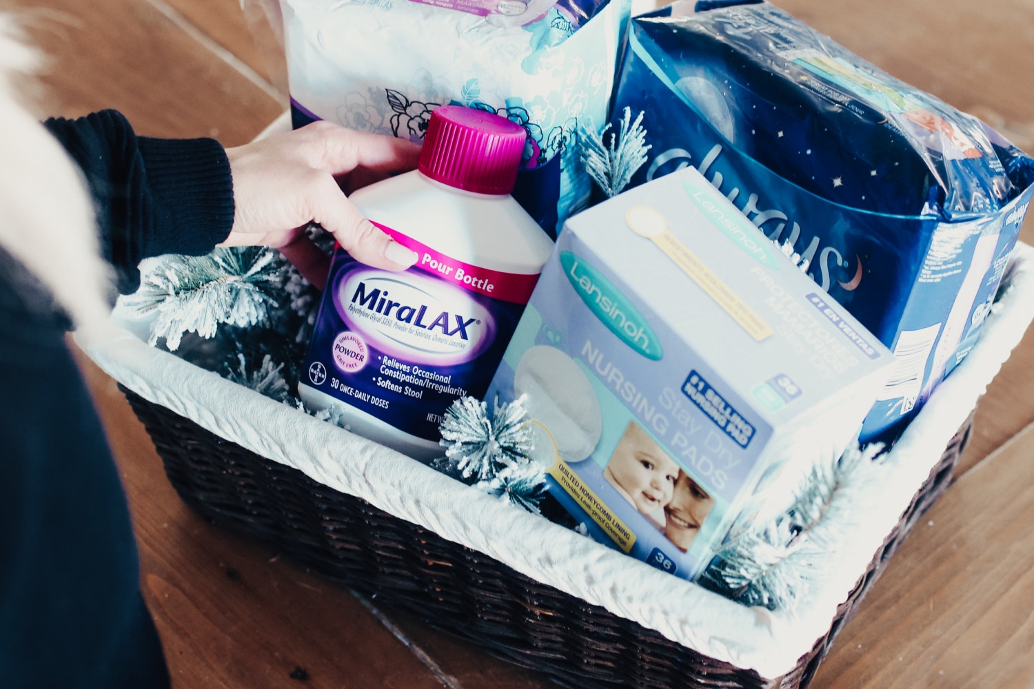 Motherhood is an amazing thing. My four babies were worth everything I went through to get them here and it’s so important that you don’t lose yourself in it. Take care of yourself! You still need to be a priority. And you’ll be a much better mom when you’re healthy and taken care of. If this basket is for a friend, tell them congratulations for me, and if it’s for you, I can’t WAIT for you to start this amazing journey!!! Hopefully this basket, full of essentials, helps you recover faster and allows you to give yourself some grace when you’re going through some pretty weird challenges postpartum!