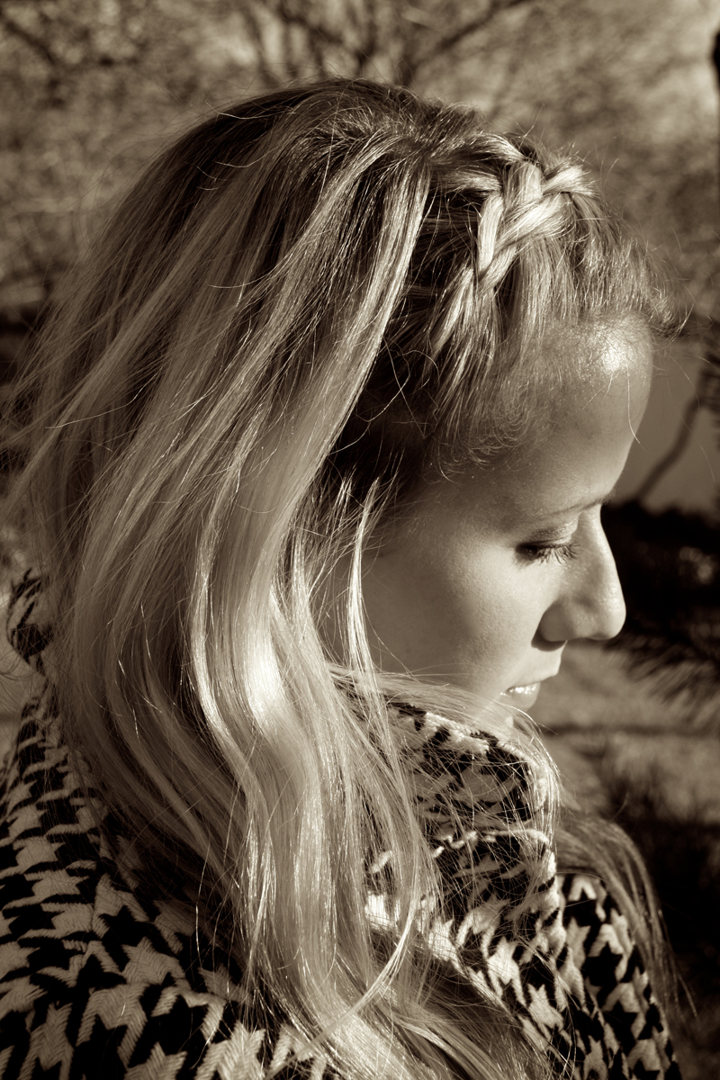 This hairstyle is nothing totally new, but it’s something a little different for me. It’s a dutch braided headband. That I just tied off with bobby pins. I started the braid close to my face and as I braided, I angled the braid further and further away from my face so that by the time it reached my ear it was a few inches back. If you don’t know how to do a dutch braid, get my book! Love dutch braids, they’re full of texture and super in right now. Enjoy!