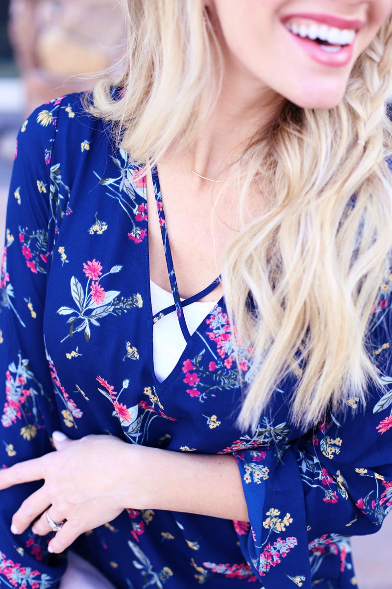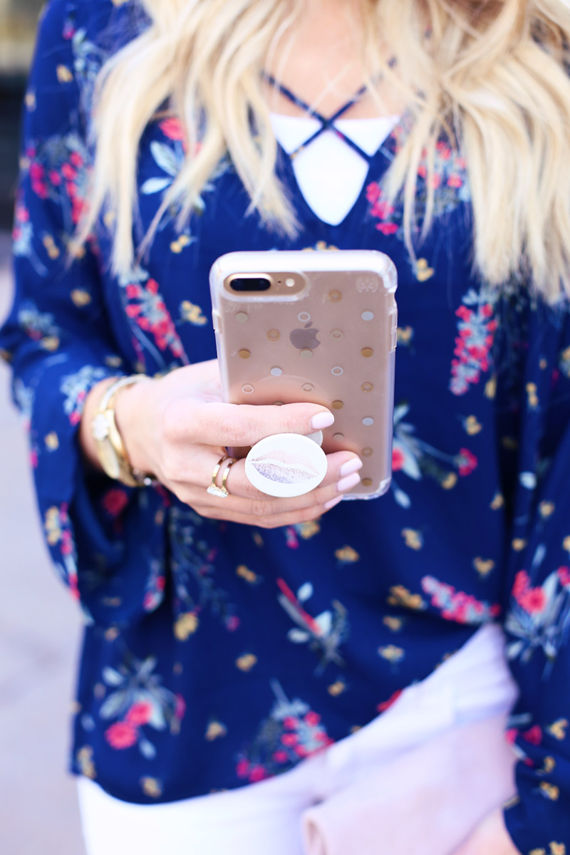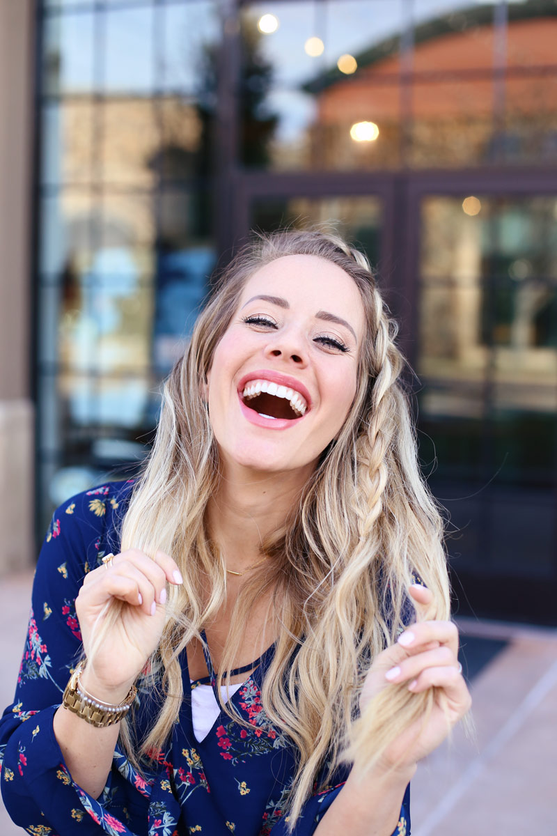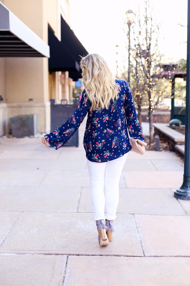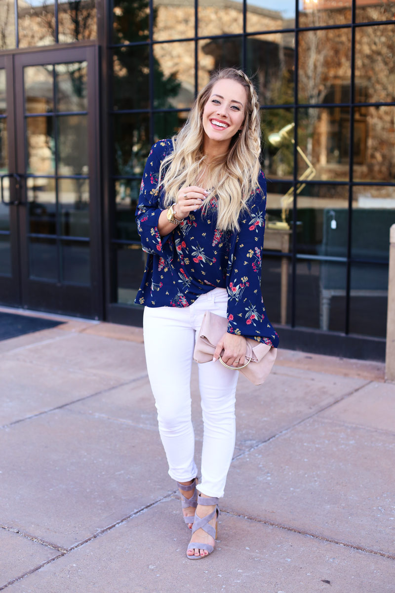 Today I’m sharing nothing more than a simple outfit post… but c’mon, it’s a good one #amiright?! The floral top, the shoes, the braid, THE BAG, the lighting. It was a goooood niiiight! Unfortunately the navy floral is out of stock on the shirt, but they have two other colors that are super cute and the fit is so flattering! PLUS my blush bag is still in stock! I can’t tell you the number of outfits I’ve worn this with, it goes with everything and is the perfect little bag when you just need something to hold your essentials!