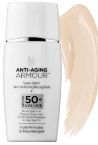 It Cosmetics Skin Perfecting SPF Beauty Fluid – This is hands down one of my FAVORITE products. I use it every morning before I go to the gym, or when I’m going to the beach. It’s not heavy coverage, literally feels like a light moisturizer but it has a tint of color in it so it diffuses blemishes and hyper pigmentation so well. It’s unlike any other bb cream I’ve used and it has an SPF of 50 in it!! I’ve been loving it for yours — you NEED IT!!!