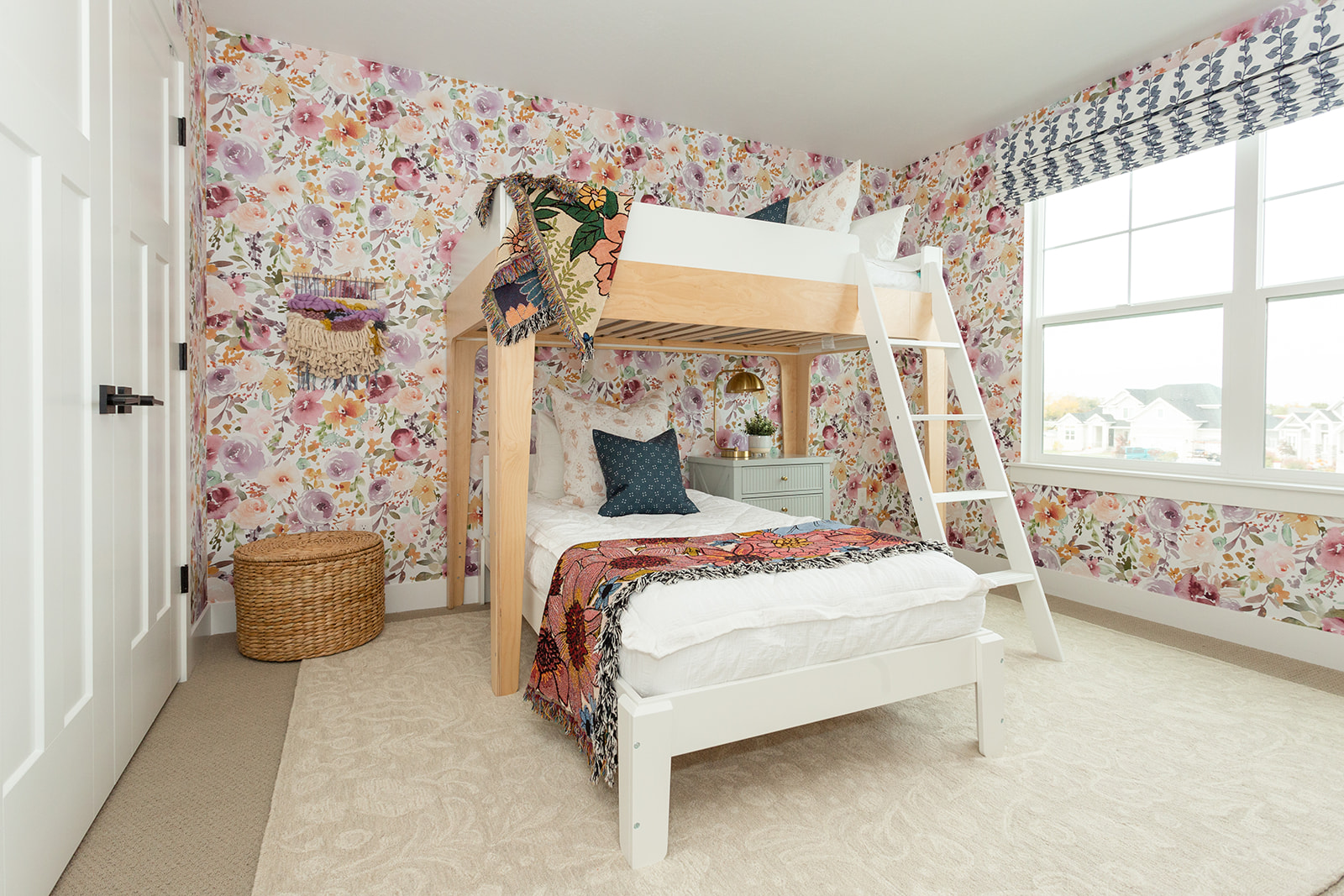 When we had the wallpaper picked out and ordered, Kelsey showed me some options for beds for the girls. Because this is a small, shared bedroom we wanted to use a bunk bed. When Kelsey showed me this modern bunk bed combination from Amazon, I fell in love! It’s the perfect combination of practicality and style. We chose new mattresses for them from Purple. We knew they would be perfect for growing girls, and Purple mattresses are so comfortable!